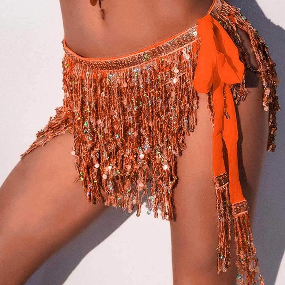 - تنورة لامعة بشراشيب، خيار رائع للرقص الشرقي، والحفلات، والأزياء، والعروض، وملابس النادي، والحفلات، والديسكو وغيرها من المناسبات