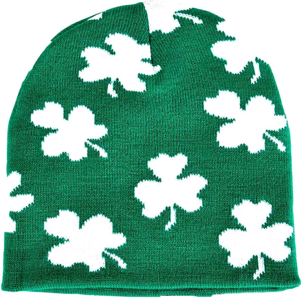 ThatsRad St. Patricks Day Knit Beanie Hat Cap Shamrock Irish Drinking Green