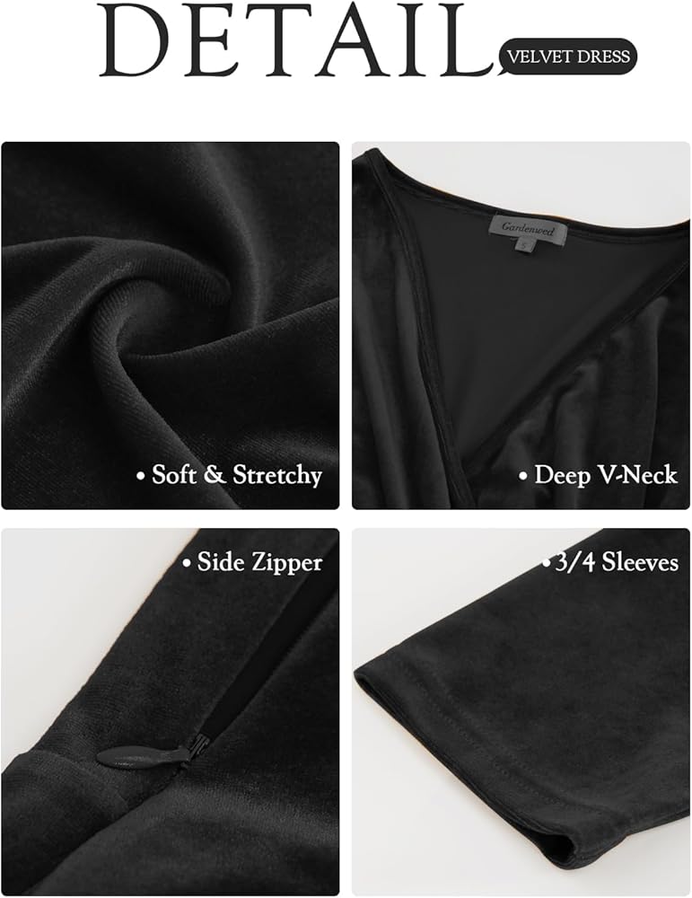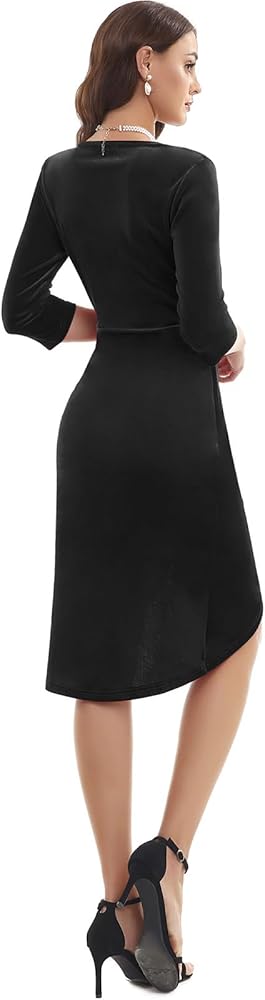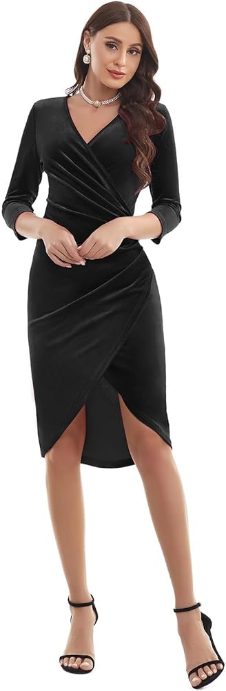 فستان نسائي من Gardenwed مخملي ملفوف برقبة على شكل حرف V وأكمام 3/4 مكشكش أنيق لحفلات الكوكتيل لضيوف الزفاف
