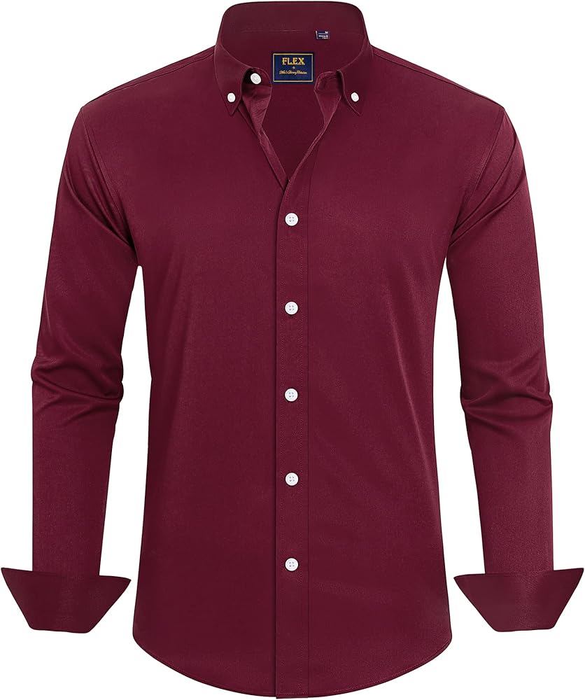 J.VER Men's Dress Shirts Solid Long Sleeve Stretch Wrinkle-Free Shirt Regular Fit Casual Button Down Shirts