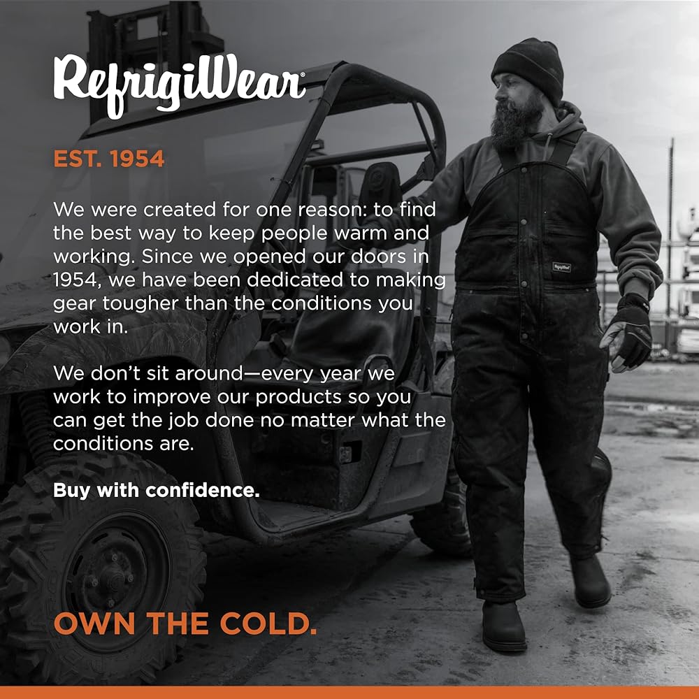 متينة وتدوم طويلاً: جميع ملابسنا متينة وتدوم طويلاً خلال سنوات من الاستخدام الداخلي والخارجي. تعمل المسامير النحاسية الموجودة في البدلة على تعزيز نقاط الضغط، كما أن الطبقة الخارجية المقاومة للرياح والماء على الغلاف الخارجي تحميك من عناصر التجمد أثناء يوم عملك.