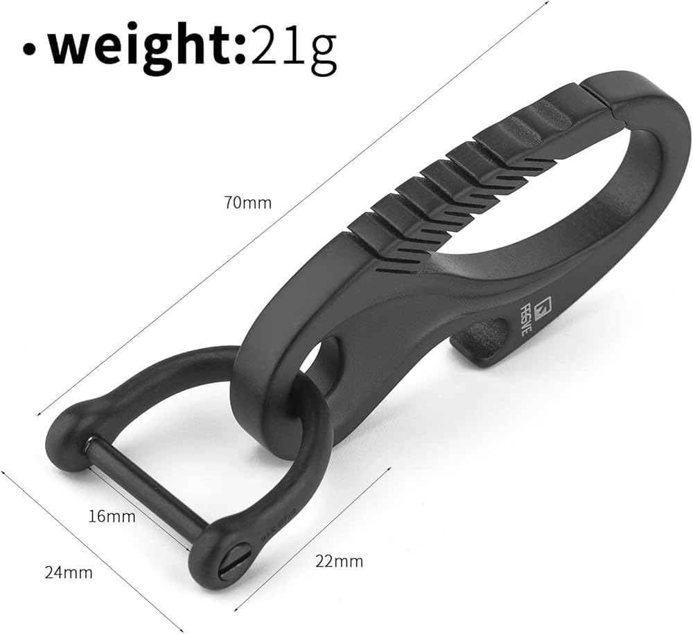 Never lose your keys again. Keychain Hook Dimensions and weight: about 2.2x1.1x0.2 inches; Ultralight: 0.65oz (18.2g), D ring(L) Dimensions 0.95x0.93 inches less burden in your daily and outdoor life!