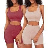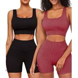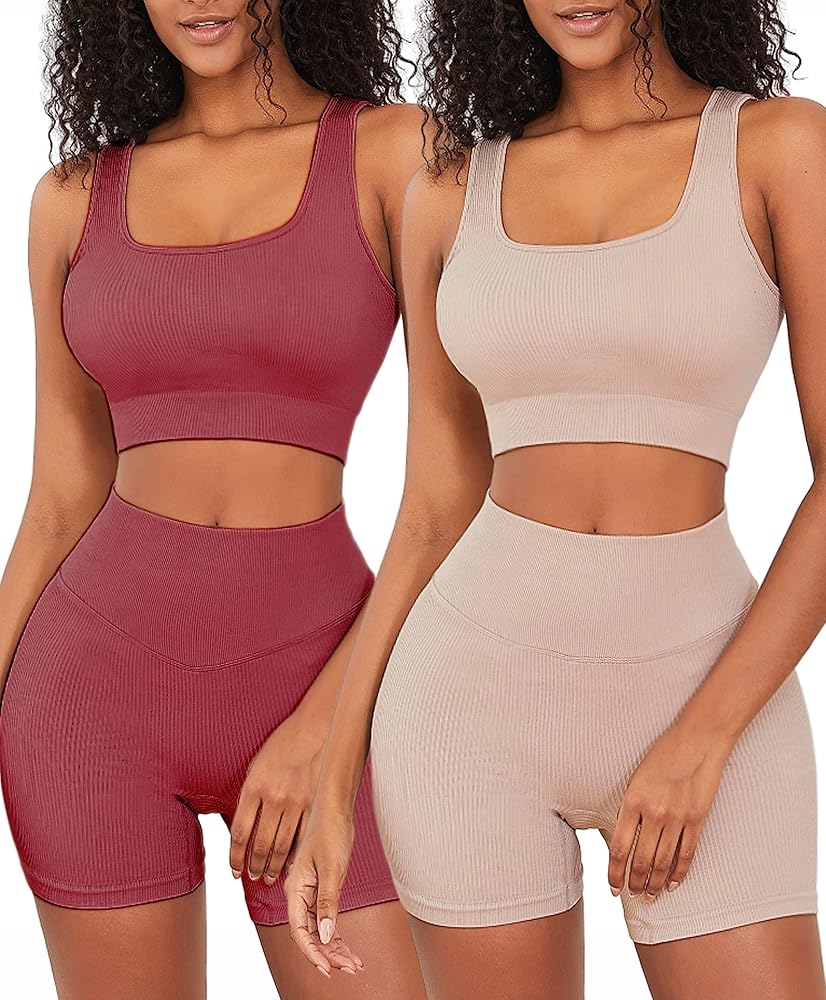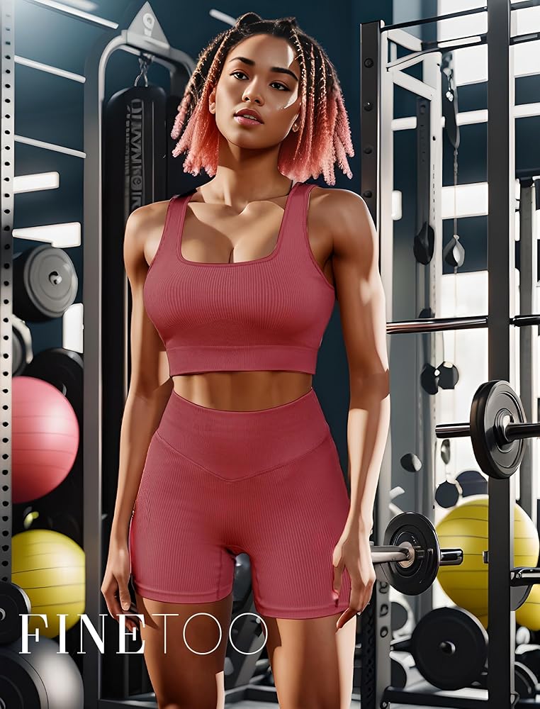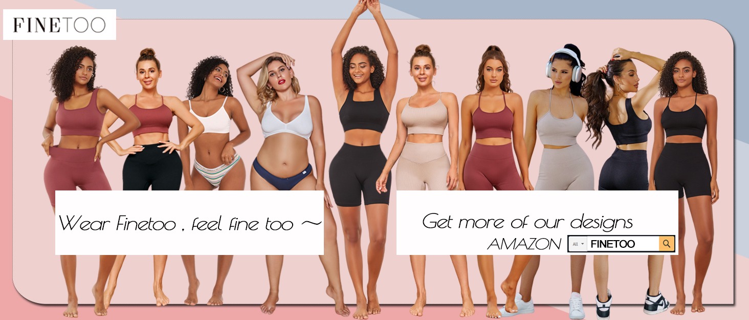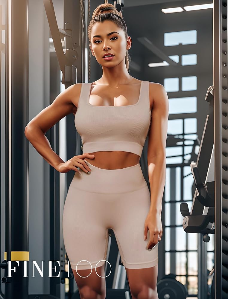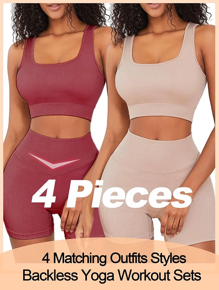 أطقم ملابس للتمرين من FINETOO للنساء مكونة من 4 قطع حمالة صدر رياضية بدون ظهر بدون خياطة عالية الخصر وقصيرة لممارسة اليوجا والصالة الرياضية ومجموعة نشطة متطابقة
