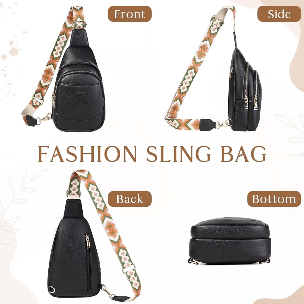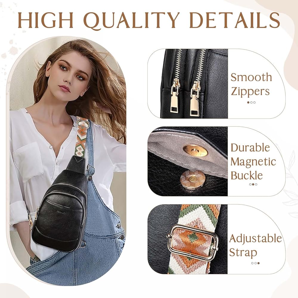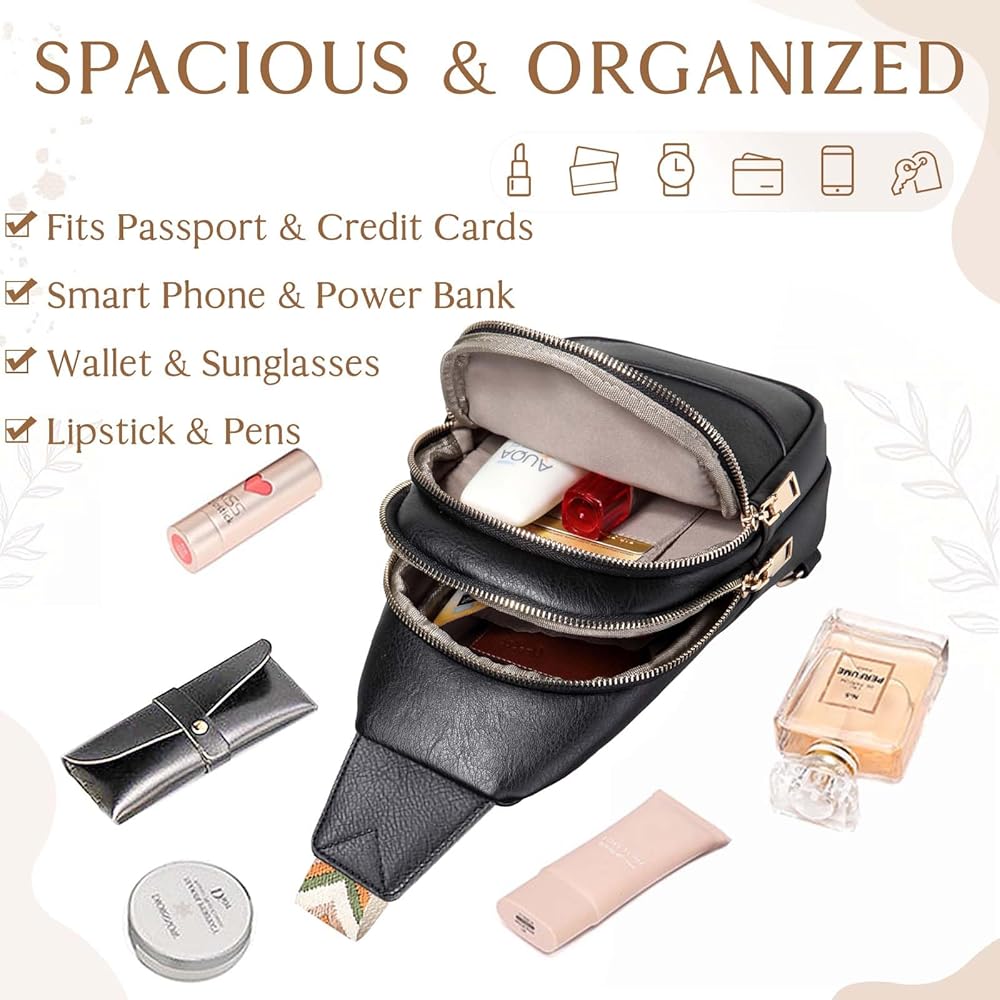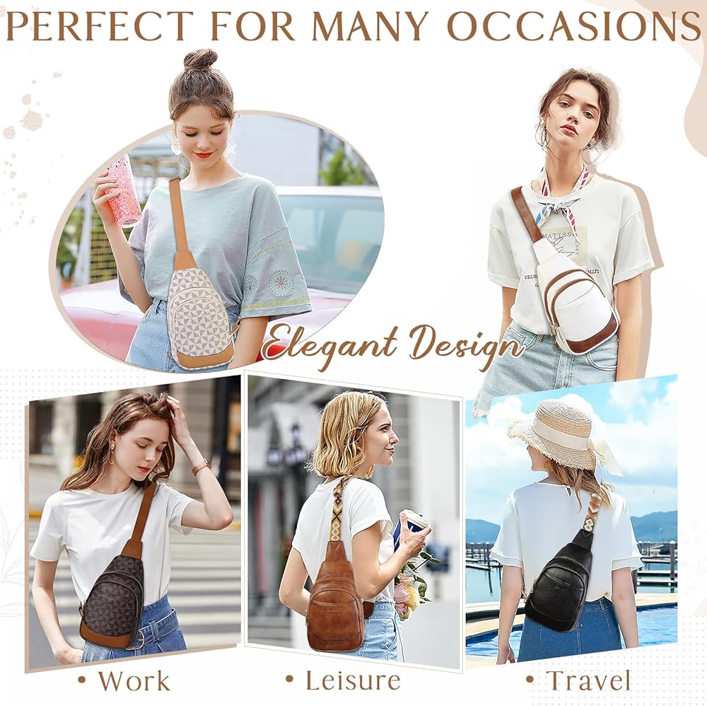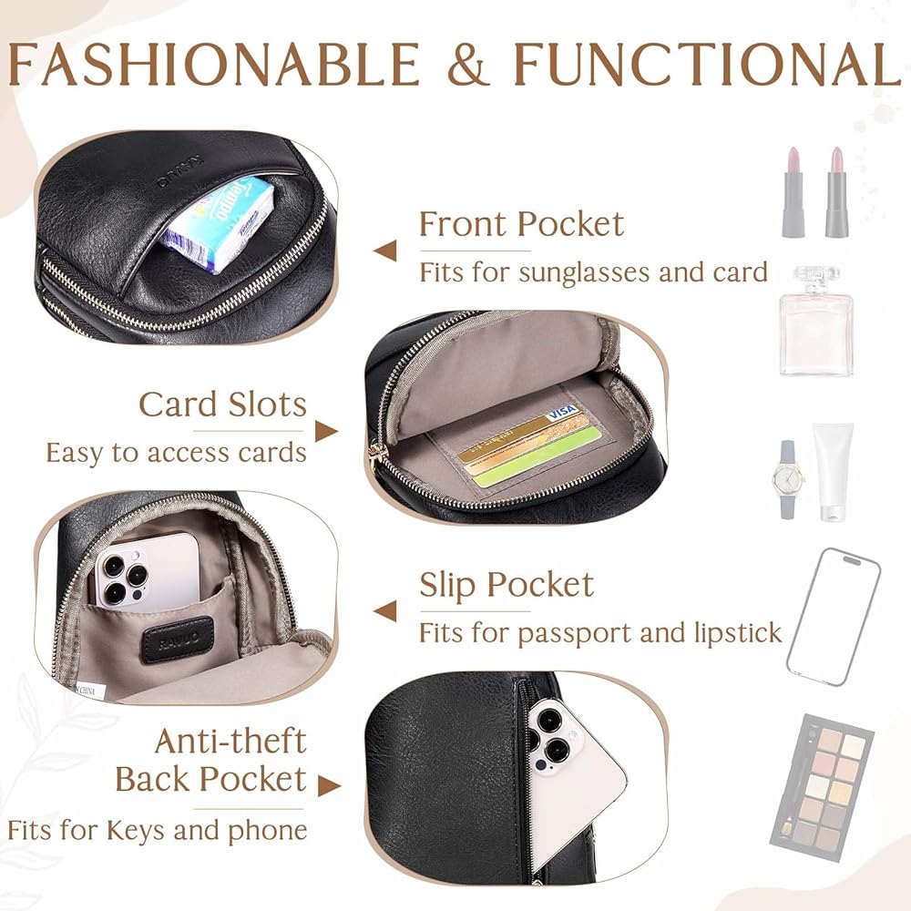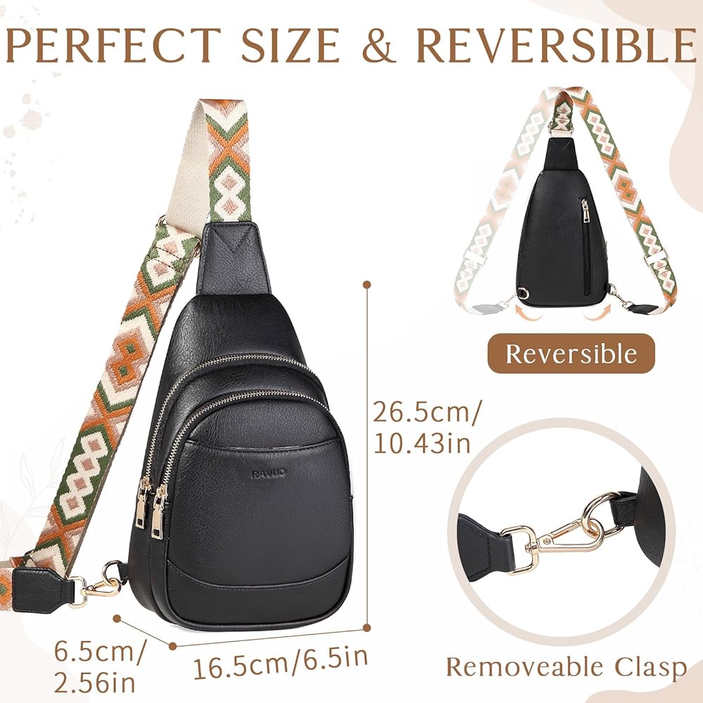 حقيبة سلينغ للنساء من رافو، حقيبة ظهر صغيرة تمر بالجسم من الجلد الصناعي مع حزام قابل للتعديل للسفر والرياضة والمشي لمسافات طويلة