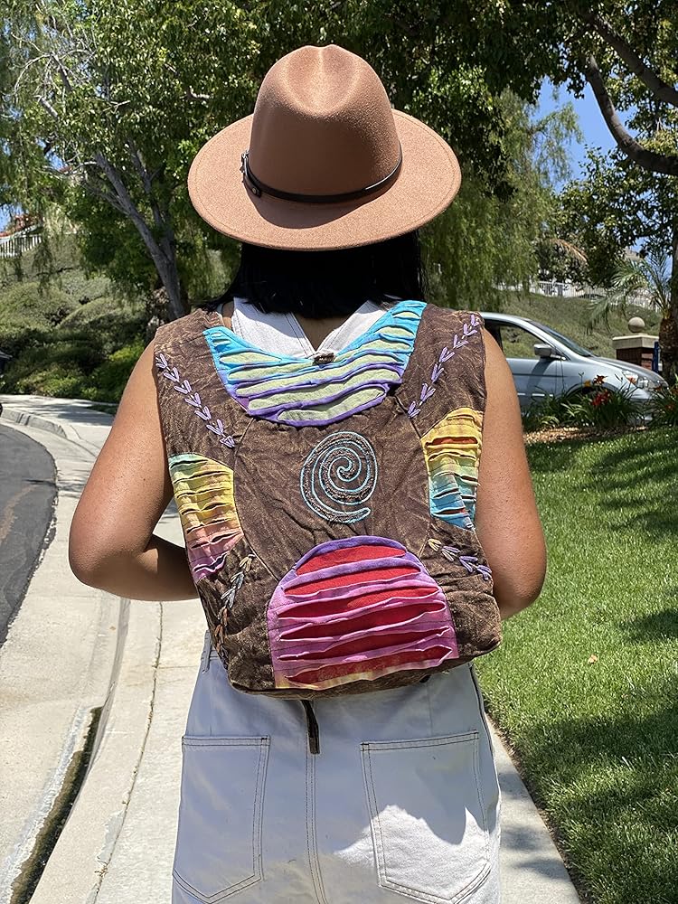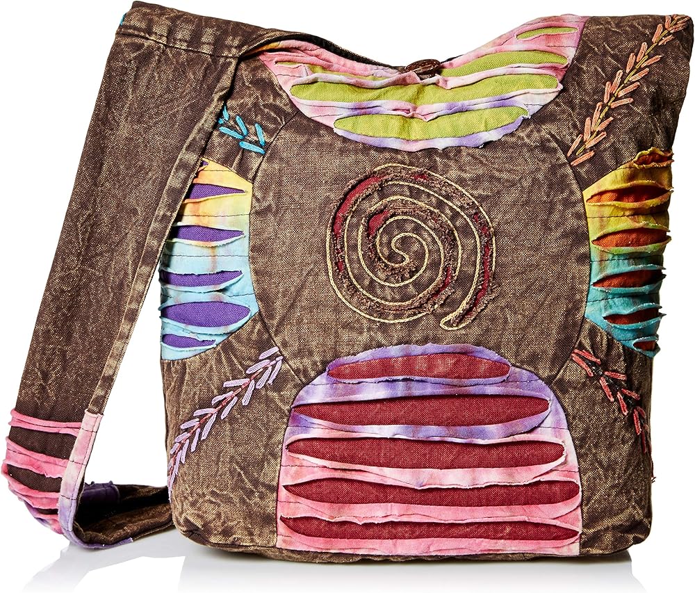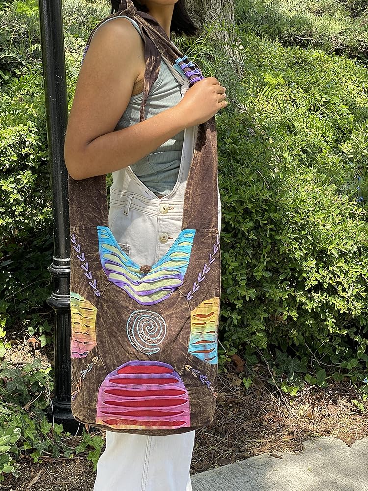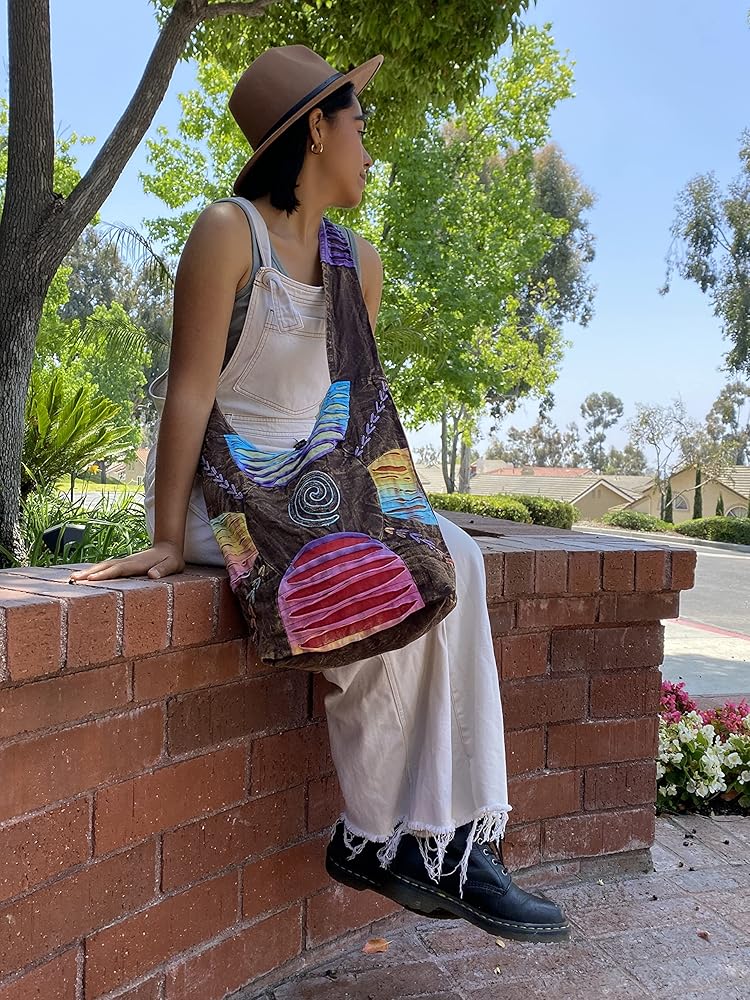 كل حقيبة من حقائب الهيبي هذه فريدة من نوعها. جميع الحقائب لها خلفية بنية غنية مغسولة بالحجارة ولكن الألوان الأخرى ستكون مختلفة في كل حقيبة. ستمتلك واحدًا من نوعه. اظهر مع هذه الحقيبة الفنية التي من المؤكد أنها سترسم المديح. مصنوعة يدوياً وتداولة إلى حد ما من قبل حرفيين موهوبين في نيبال.