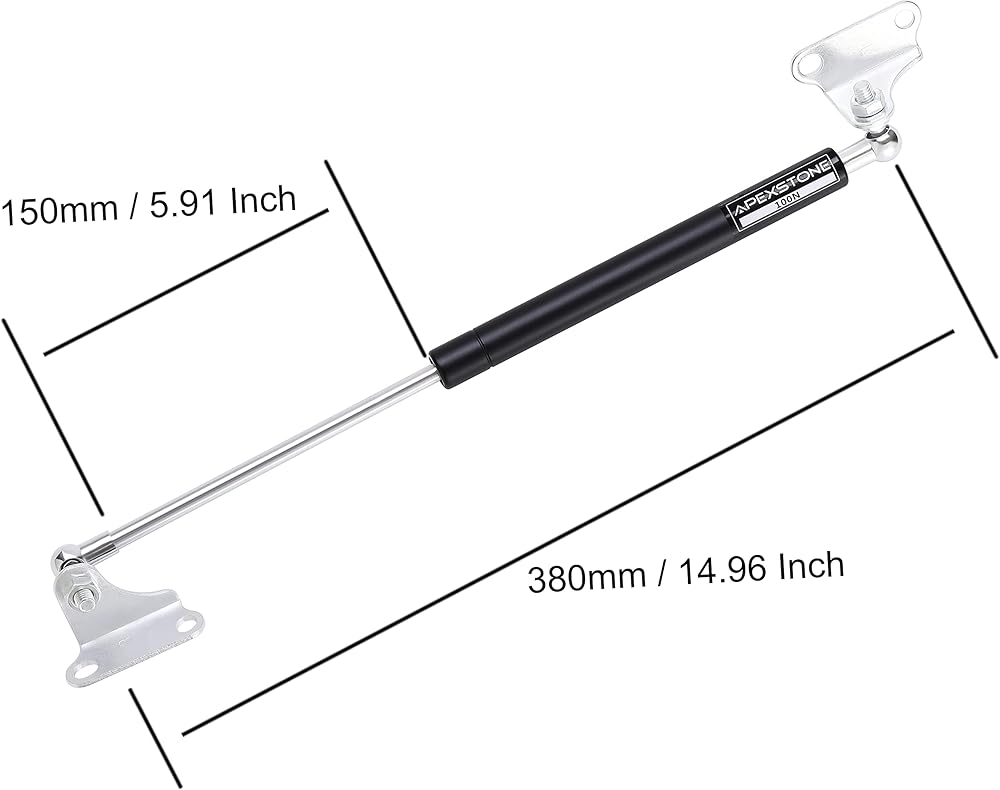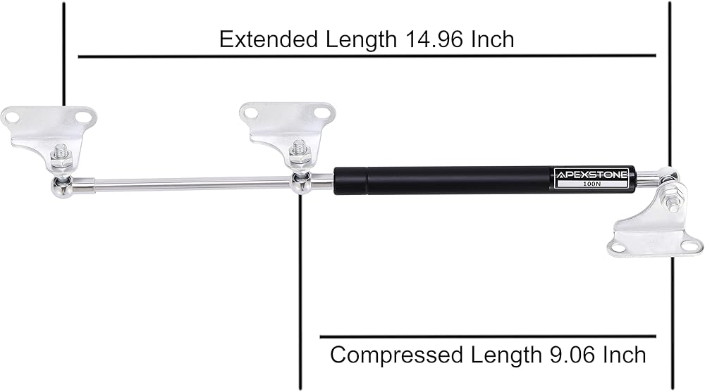 القوة: 22.5 كجم/100 N(حزامة)، الطول (من الوسط إلى الوسط): 14. 96 بوصة (380 مم)، الطول المضغوط (من المركز إلى الوسط): 9. 06 بوصة (230 ملم). مقاس فتحات الدعامة 8 مم (القطر)، 8 مم (القطر)، 10 مم × 8 مم (الطول X العرض)