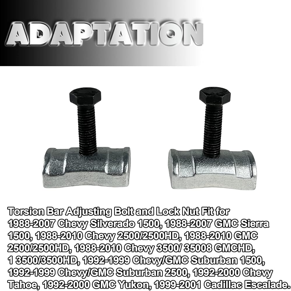 [مناسب لـ] مسمار تعديل قضيب الالتواء وصمولة قفل مناسب لسيارة شيفروليه سيلفرادو 1500 1988-2007 وجي ام سي سييرا 1500 1988-2010 وشيفروليه 2500 / 2500 اتش دي 1988-2010 وجي ام سي 2500 / 25000 / HD، 1988-2010 شيفروليه 3500 / 3500 اتش دي، 1988-2010 جي ام سي 3500 / 3500 اتش دي، 1992-1999 شيفروليه 1992-1999 شيفروليه / جي ام سي سوبربان 2500،1992-1999 992-2-99000 شيفروليه تاهو، جي ام سي يوكون 1992-2000، كاديلاك اسكاليد 1999-2001.