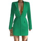 فستان بليزر نسائي بأكمام طويلة من ARTFREE أنيق مثير بياقة على شكل V عميقة وطية صدر السترة فساتين قصيرة غير رسمية 2024