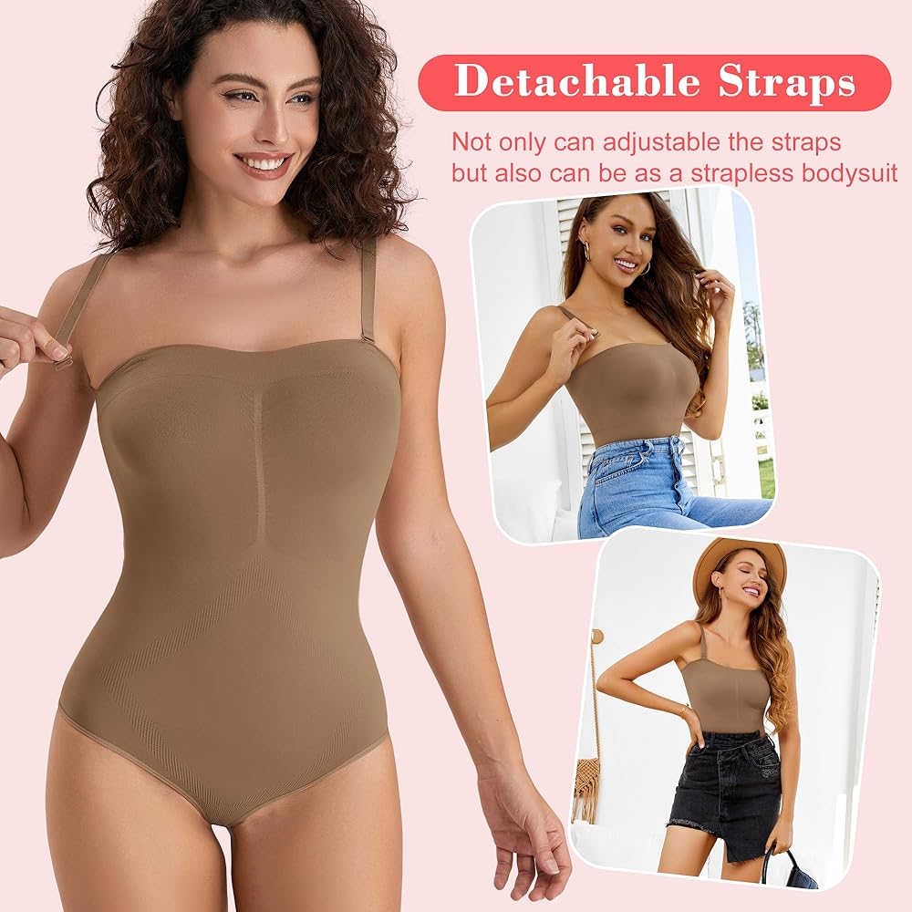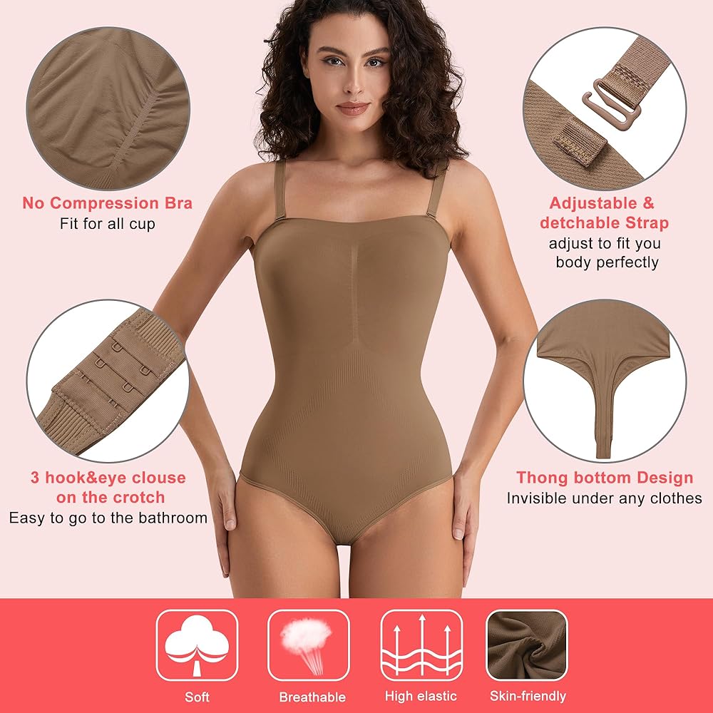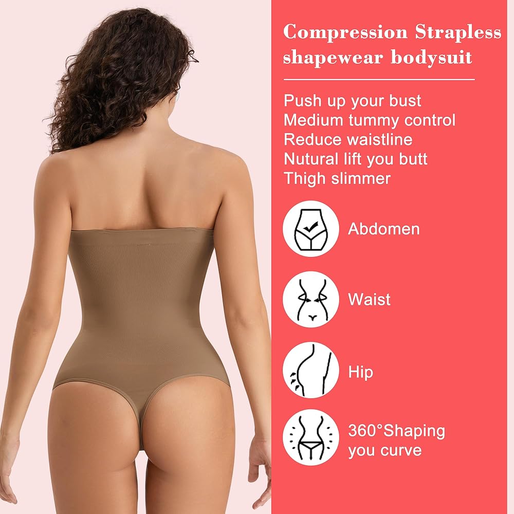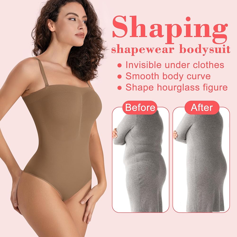 صديق للبشرة وقابل للتمدد ومتين - بدلة للجسم بدون حمالات للنساء من HIOFFER مصنوعة من نسيج عالي المرونة، 80% نايلون، 20% سباندكس، وهو سلس وناعم وقابل للتمدد وخفيف الوزن، ناعم جدًا بحيث يمكن أن يكون غير مرئي تحت أي ملابس، مناسب لك تمامًا الجسم مثالي ومريح لجميع المواسم.