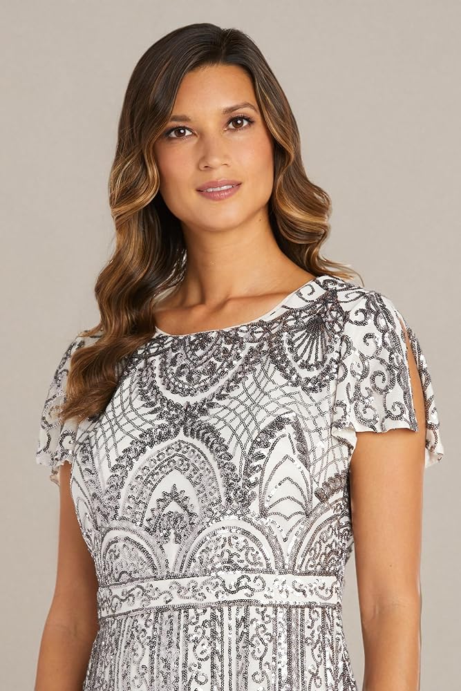 The top features a fleur-de-lis sequin pattern that glitters with every movement.