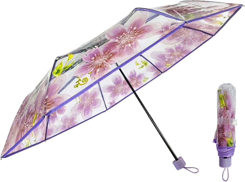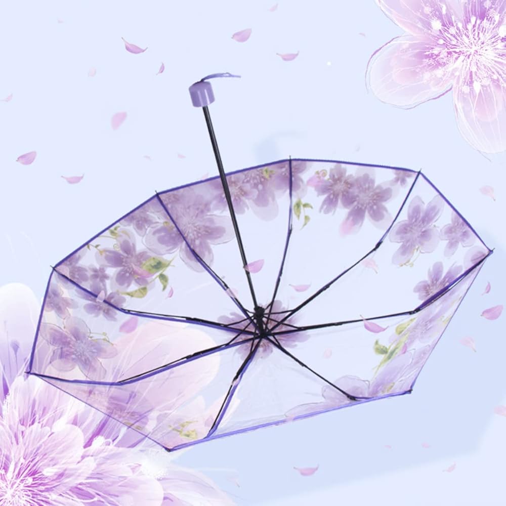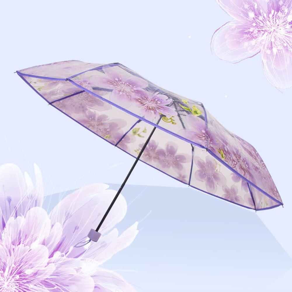 مظلة شفافة بتصميم زهرة الكرز من جي كيه بونسكس، مظلة ساكورا شفافة قابلة للطي، مظلة مطر بثلاث طيات للبنات والاولاد والنساء والطلاب والبالغين