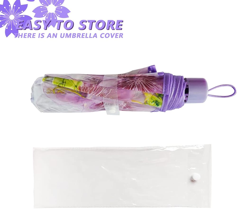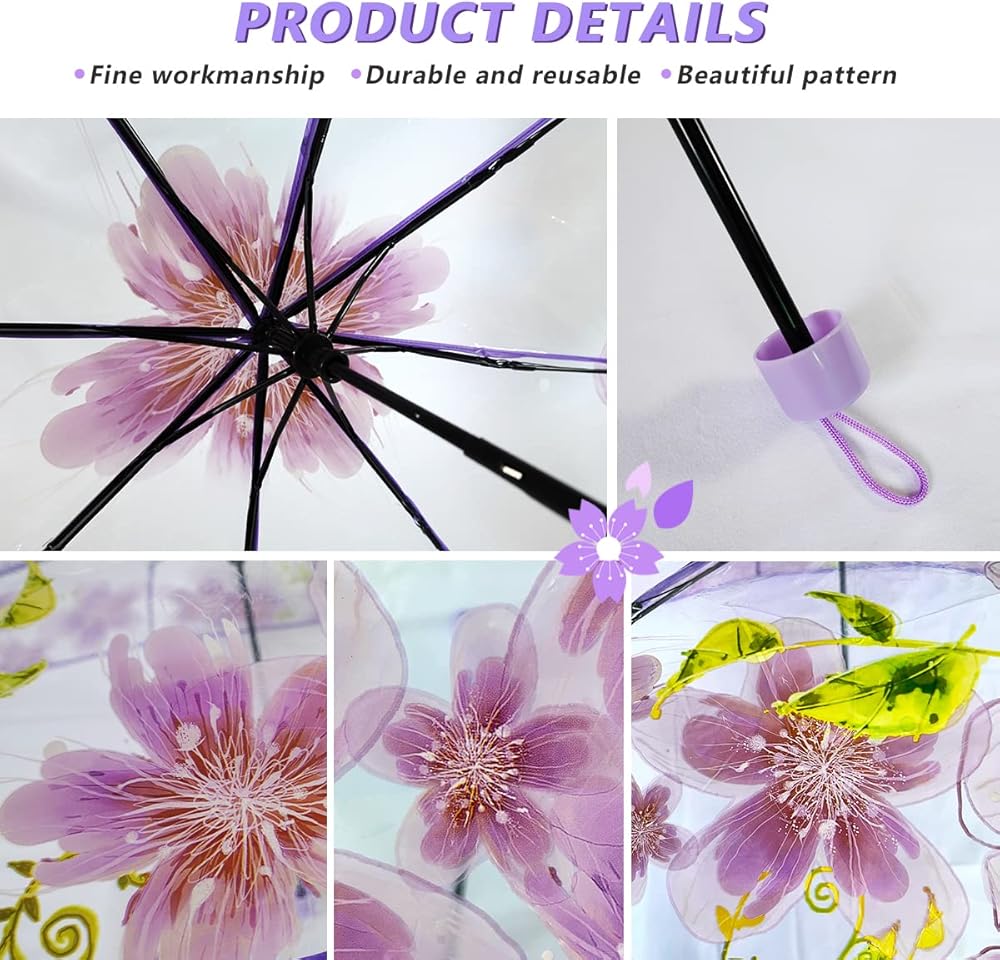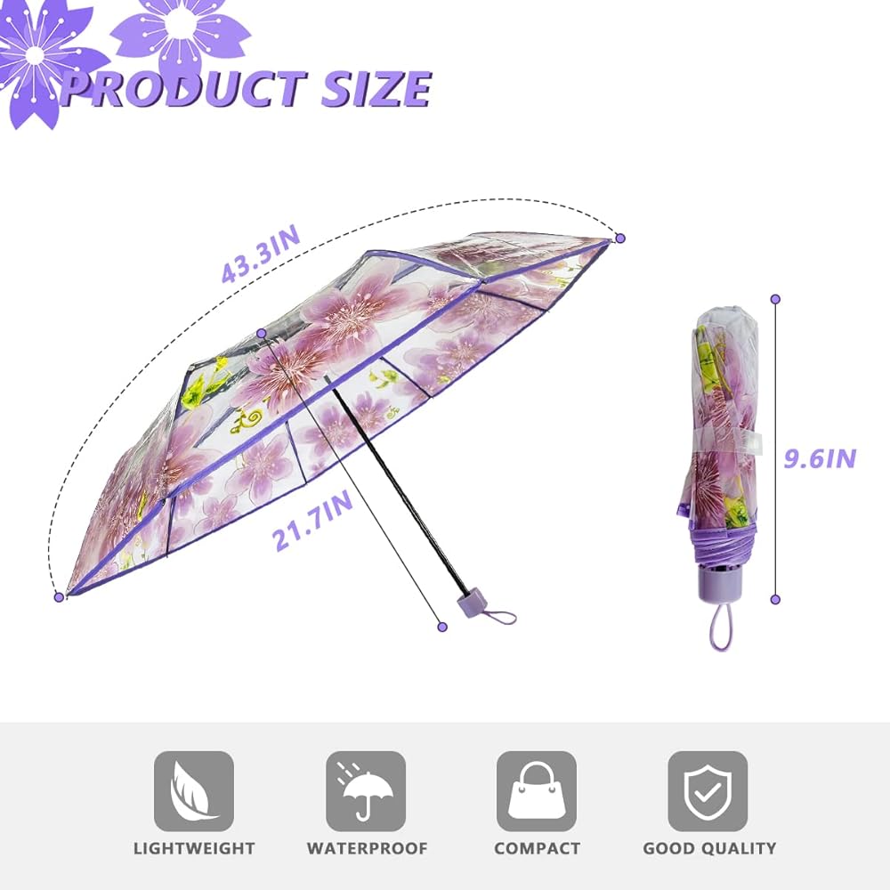 المقاس: قطر مظلة زهر الكرز 35.4 انش/90 سم، كافية لاستيعاب شخصين؛ يمكن طي المظلة الشفافة حتى 11.8 انش/30 سم.