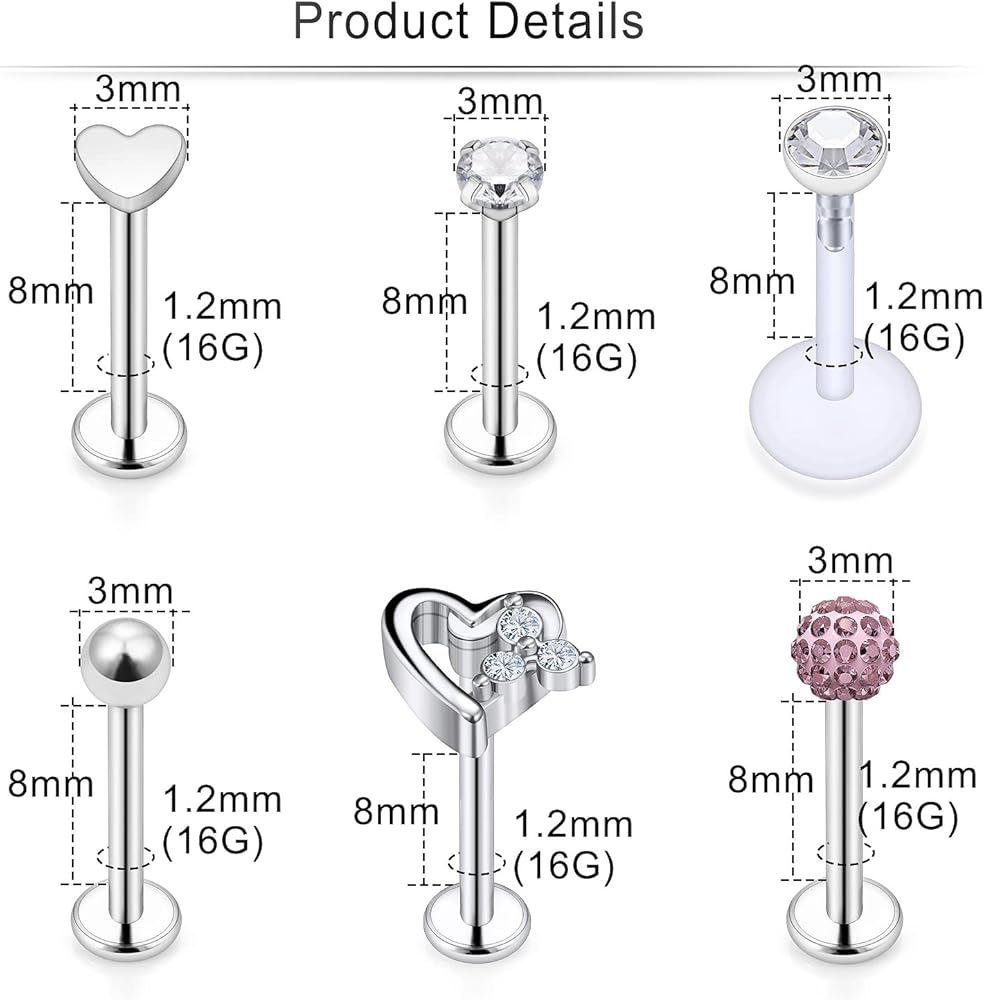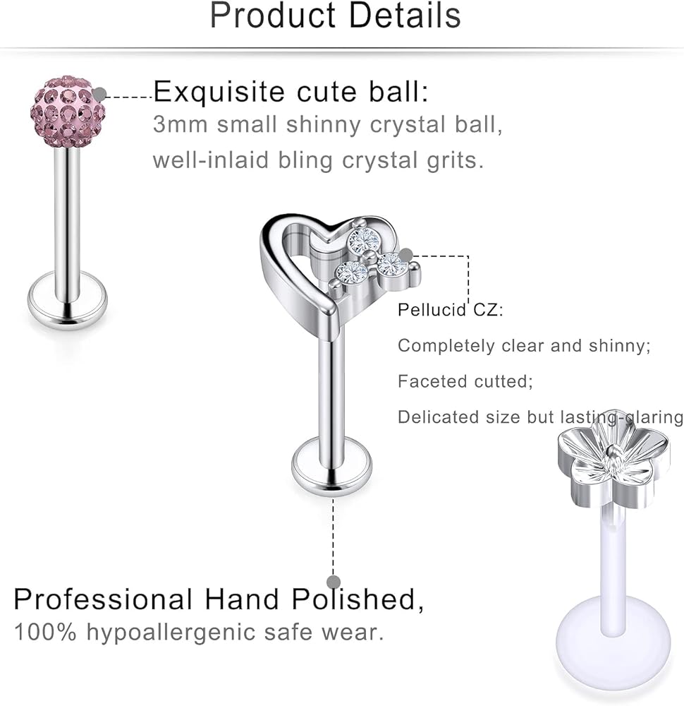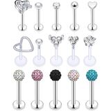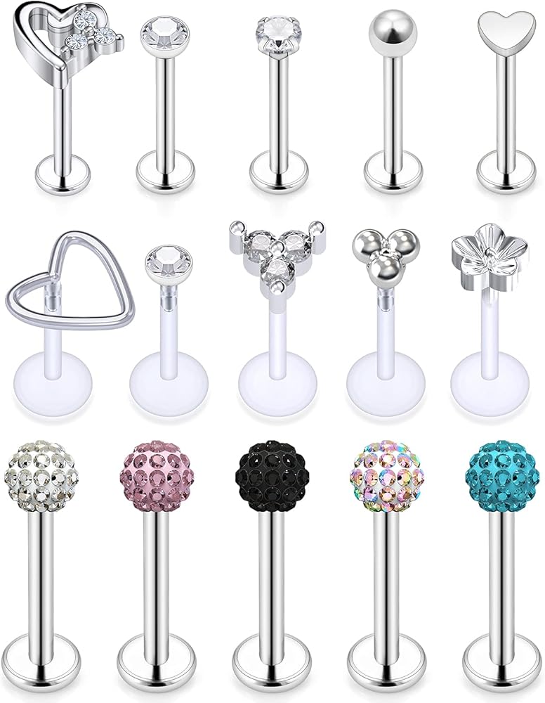 PACKAGE INCLUDING -- One Order Including 15 Pcs lip piercing Jewelry. 10 Pcs Surgical Steel lip Rings Studs,5 Pcs Clear Plastic lip Rings Studs;Mix-styles Give You Multiple Wearing Choices.