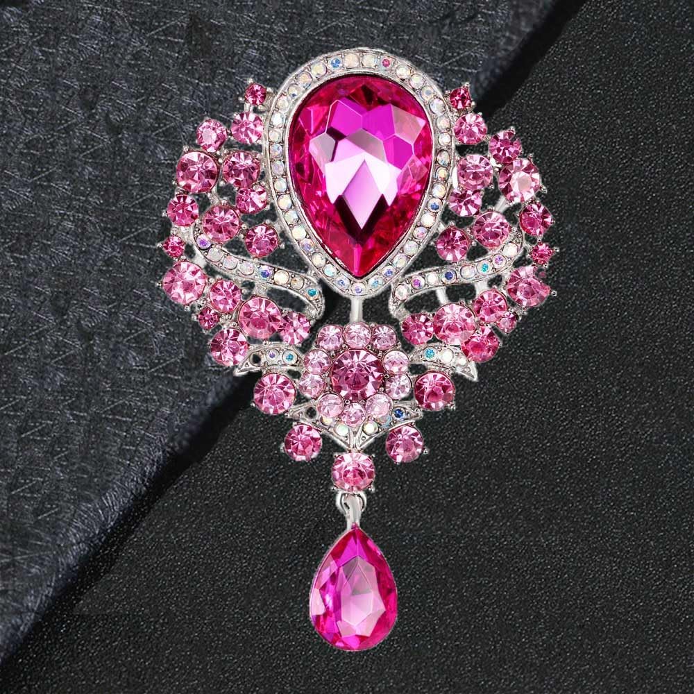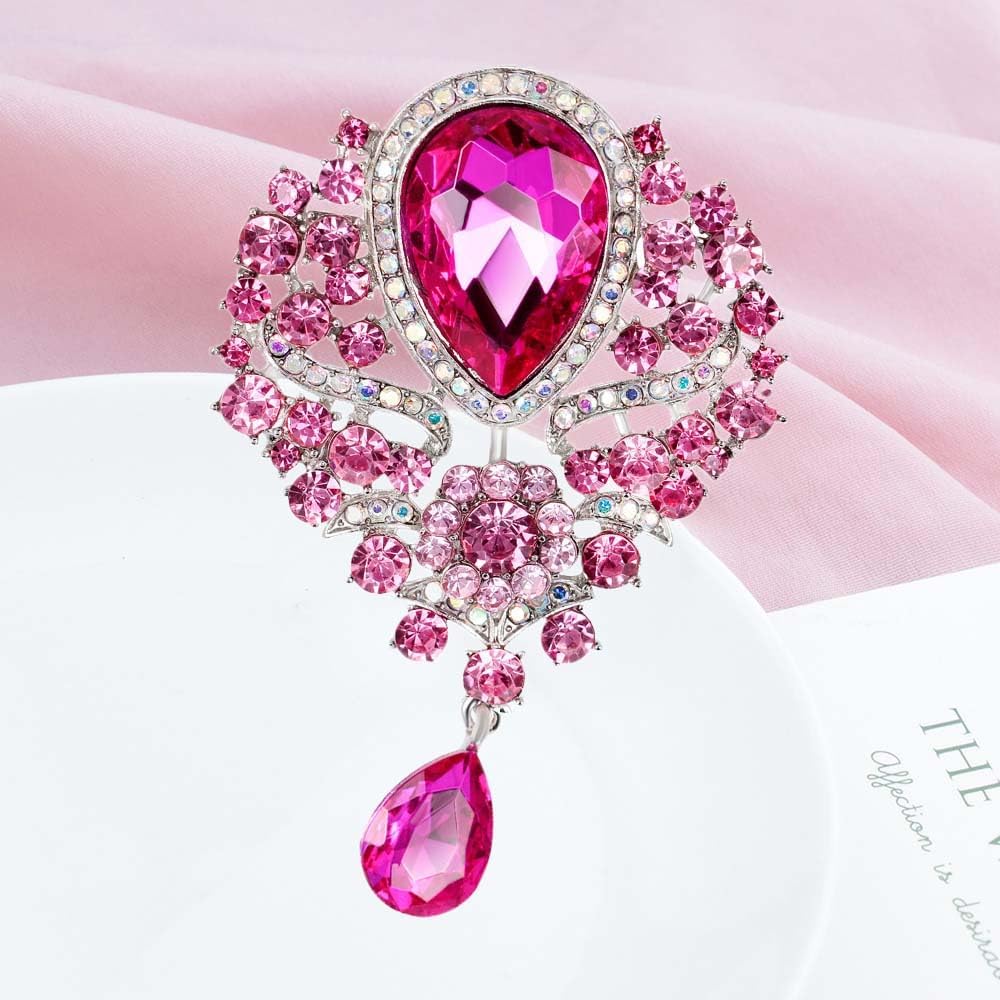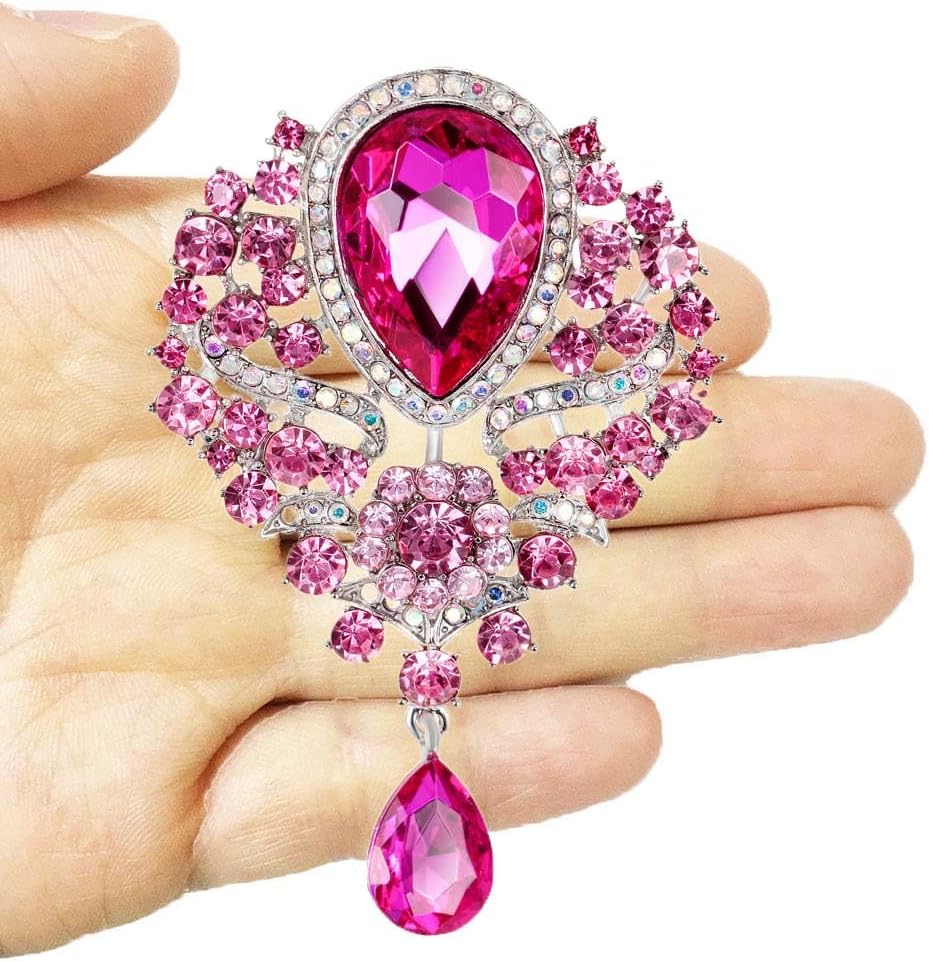 Ezing 3.3 بوصة كبيرة حجر الراين الزجاج الكبير كريستال قلادة بروش مجوهرات لحفل الزفاف