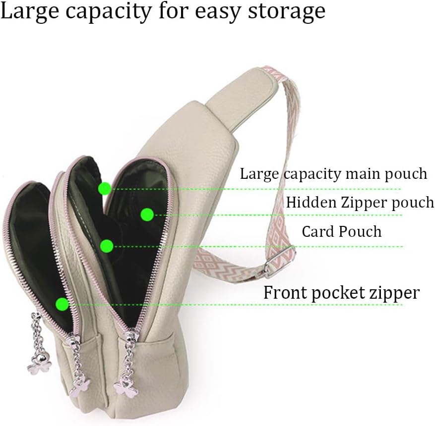 تصميم متعدد الاستخدامات: يمكن ارتداء هذه الحقيبة التي تمر بالجسم العصرية للنساء بطرق متعددة، بما في ذلك كحقيبة صدر أو حقيبة كتف طويلة تمر بالجسم أو حقيبة فوق الكتف لمختلف السيناريوهات، مثل اللياقة البدنية أو التجمعات أو المشي أو كاليفورنيا