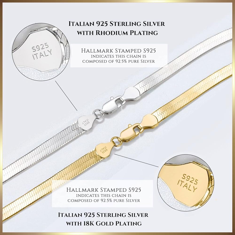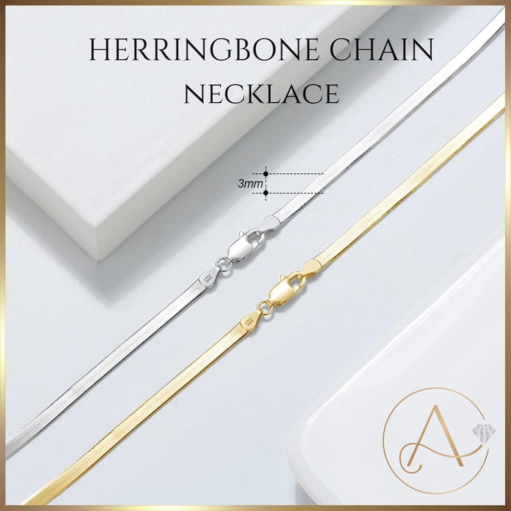 💎HERRINGBONE CHAIN: Herringbone necklaces are a great choice for everyday wear. They are simple, yet stylish and can be dressed up or down depending on the occasion. This stunning chain lies flat against the skin, gracefully contouring the one's neck. Simply stunning all on its own or can be easily layered for a standout look. This chain is 3. 0 mm wide, weighs approximately 5. 19 grams, and ends with a sturdy lobster clasp.