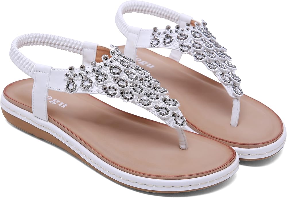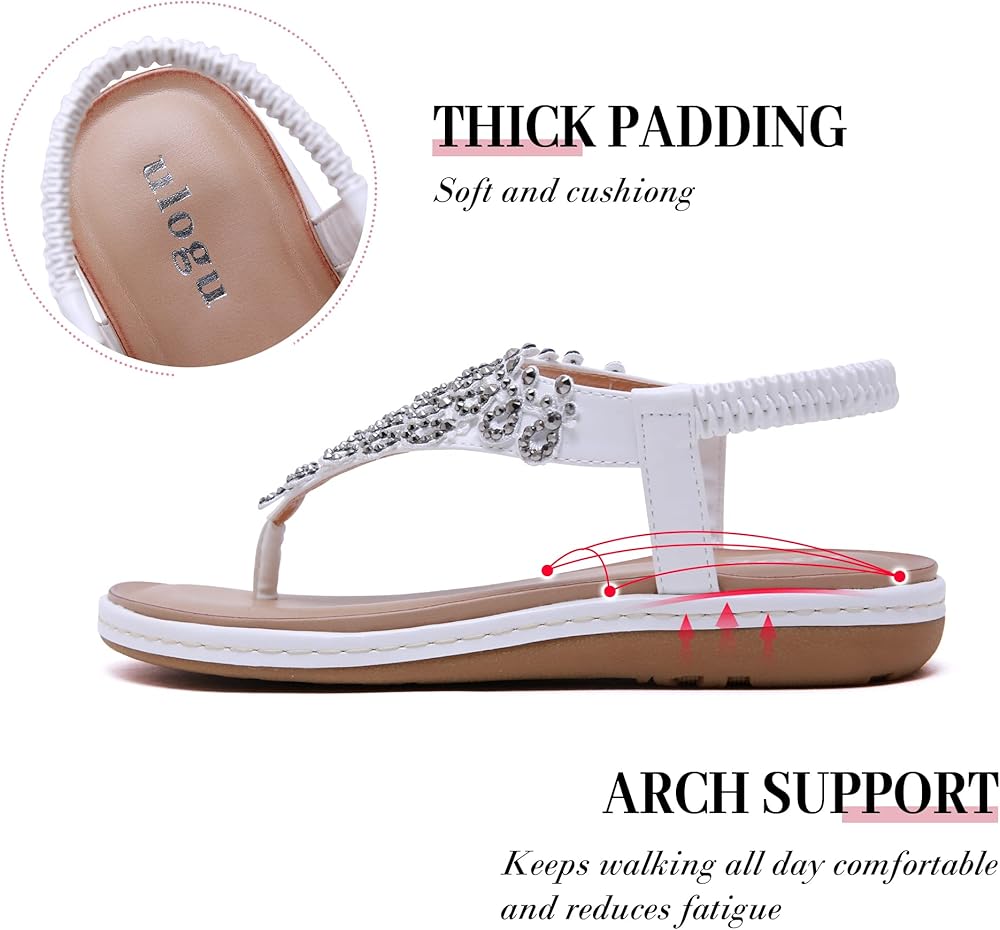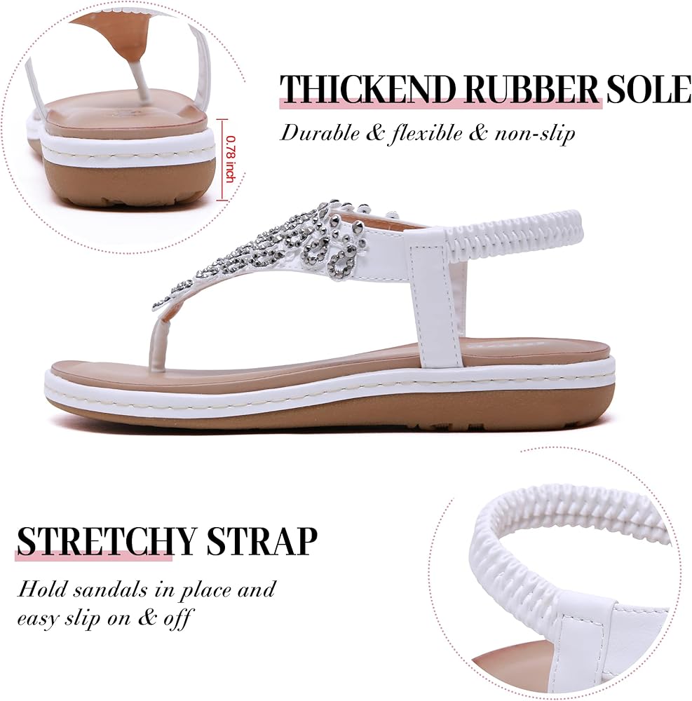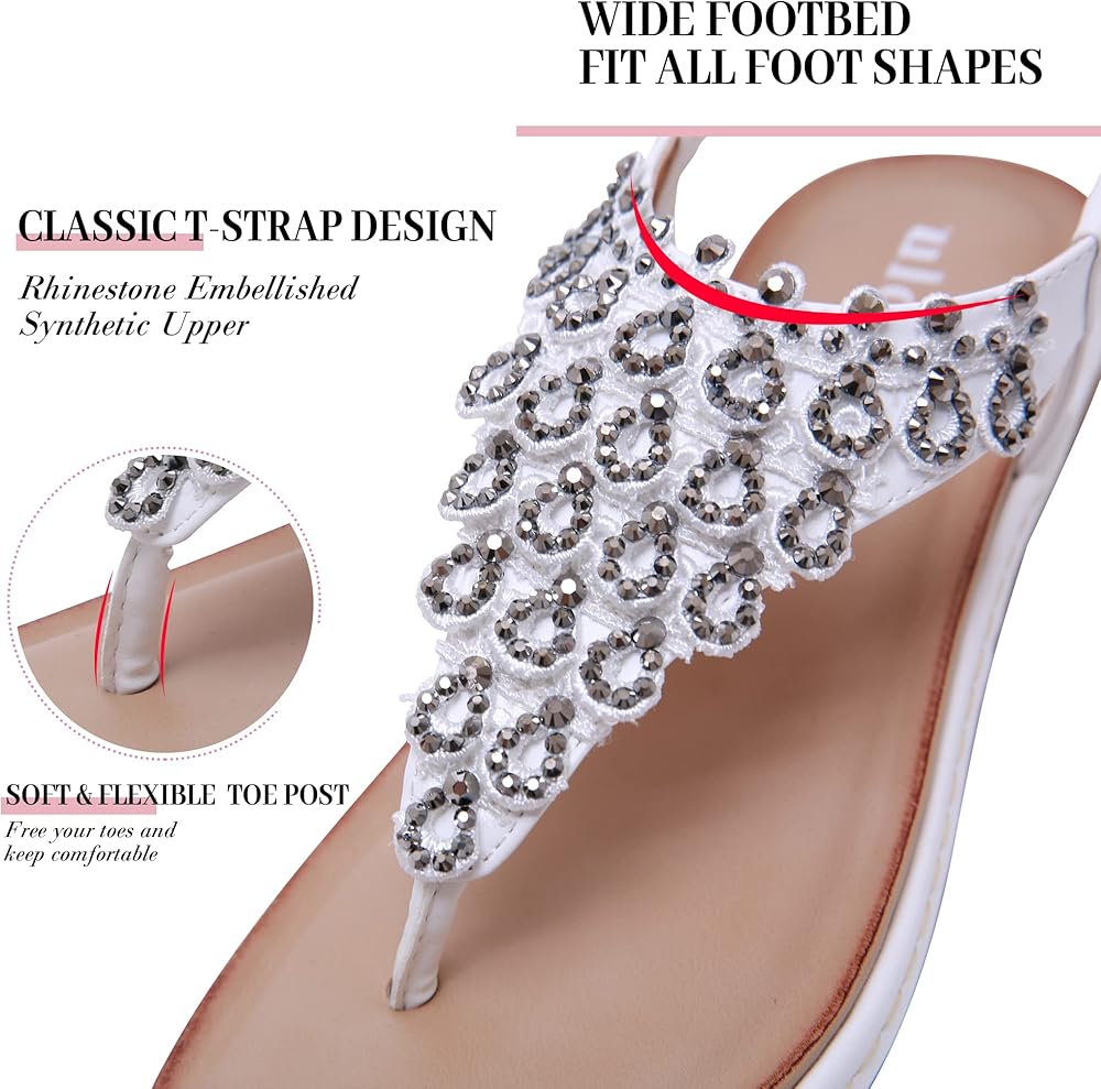 【نمط فريد】 أحجار الراين المخيطة يدويًا على الجزء العلوي الصناعي اللافت للنظر على شكل حرف T تعطي ملابسك بريقًا. يمكنك ارتداء صنادل بوهو هذه مع أي بدلة، مثل بذلة أو شورت أو جينز أو فستان إلخ.