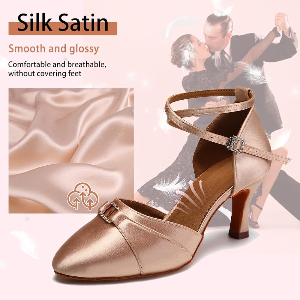 ❤️التصميم: تصميم كلاسيكي مغلق عند الأصابع. الجزء الداخلي من الشامواه بدون تقرحات ومريح في الارتداء. يمكن للكعب 7.5 سم توزيع ضغط جسمك بشكل أفضل، لذلك يمكنك الرقص لفترة طويلة دون الشعور بالتعب. مثالي للرقص طوال الليل