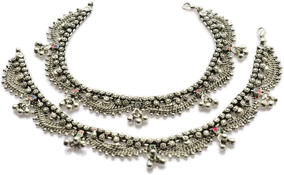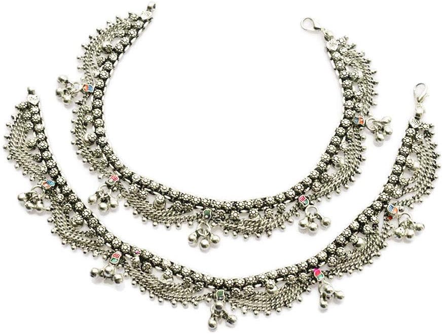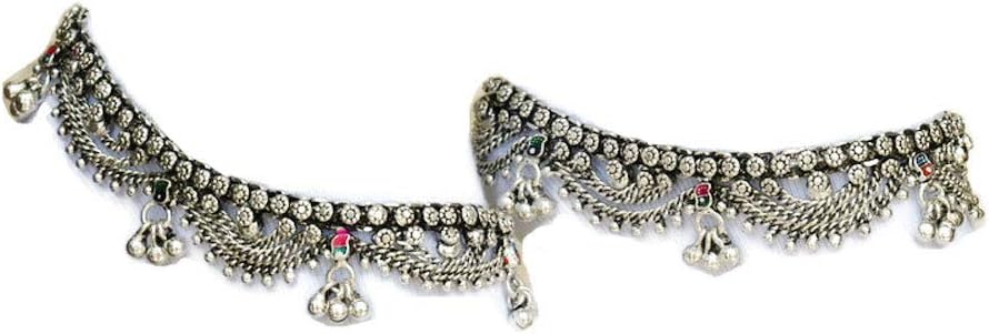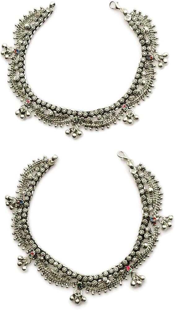 سلاسل نحاسية ملحومة بطبقات مع قصاصات نحاسية دقيقة. لمسة نهائية مطلية بالفضة. وصلة تمديد سلسلة قابلة للتعديل متوفرة إذا لزم الأمر لتناسب مقاس أكبر للكاحل. تم تصميم الخلخال الهندي ليكون فضفاضًا على القدمين ولكن لن يسقط.