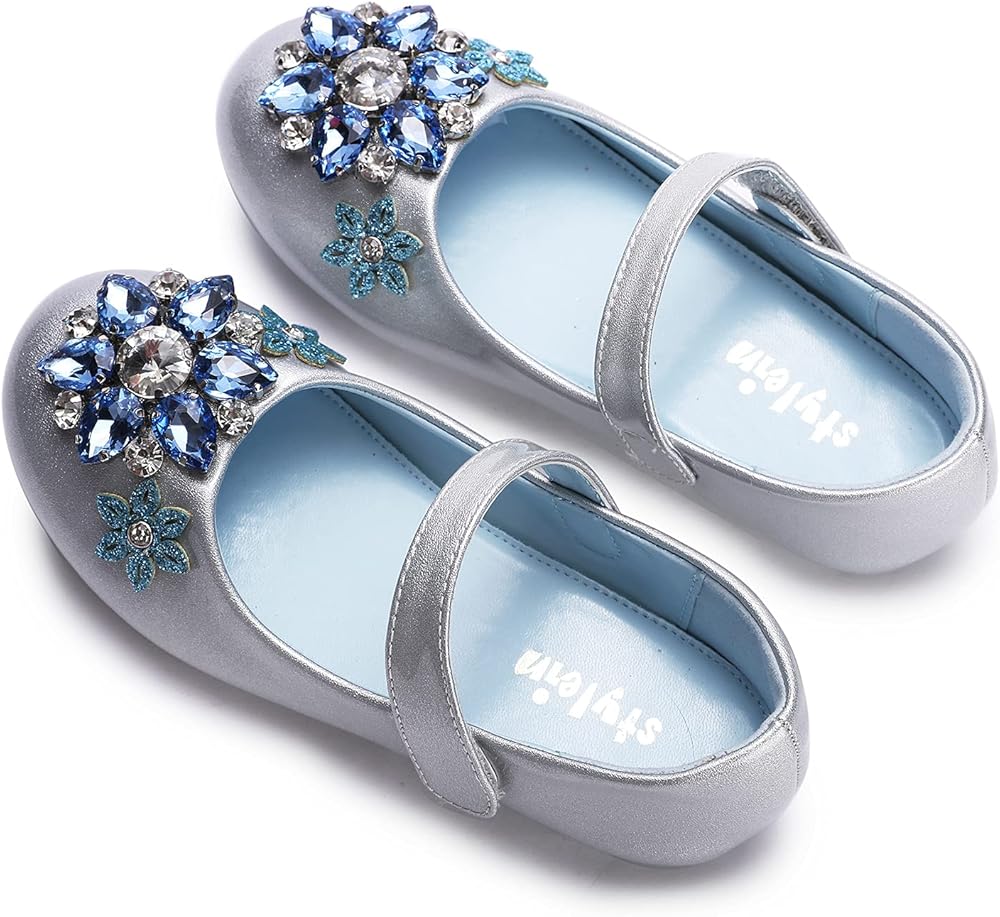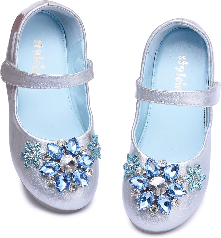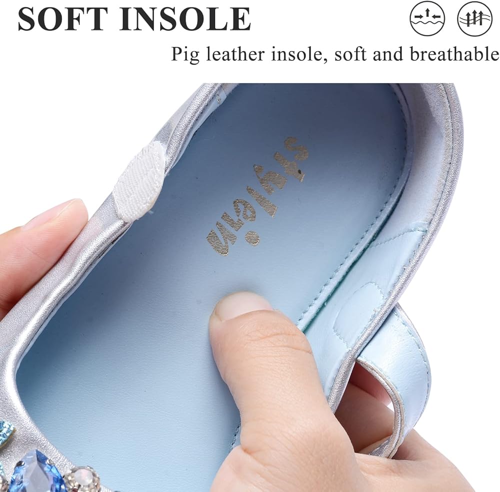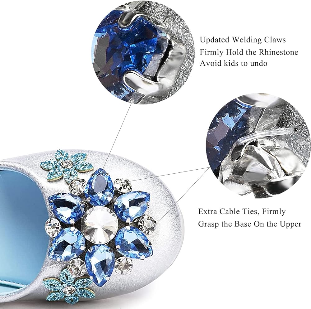 【اللون الكلاسيكي】نختار لونين كلاسيكيين: فضي مع أحجار الراين الزرقاء والأبيض مع أحجار الراين الأرجوانية. يمكنك مطابقة الفساتين ذات الألوان المختلفة لسيدتك الصغيرة.