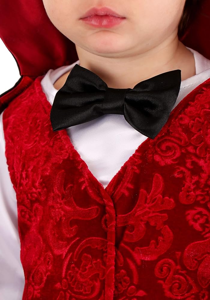 Dress them for their first Halloween in this little Vlad the vampire costume. Long sleeve layered top with attached red brocade vest front and white satin sleeves, black bow at neckline, and pull-on black bottoms; matching red and black cape with a collar neckline and scalloped hemline. Princess Paradise offers a variety of vampire costumes in styles for children, tweens, and adults. Combine with other classic Monster costumes for group dress up fun. Costumes are sized differently than clothes, please consult the Princess Paradise size Chart in images, read recent reviews and Q&A before selecting a size to determine best fit; do not buy based on clothing size or age. Look for Princess Paradise trademark on tags to help ensure you've received authentic safety-tested items. Great for daily dress up and imaginative play, birthdays, themed parties, photos, parades, and, of course, trick-or-treat and Halloween too! Bring imagination to life with Princess Paradise costumes and accessories. Princess Paradise creates top quality costumes for dress-up and all costume occasions in sizes from newborn to adult.
