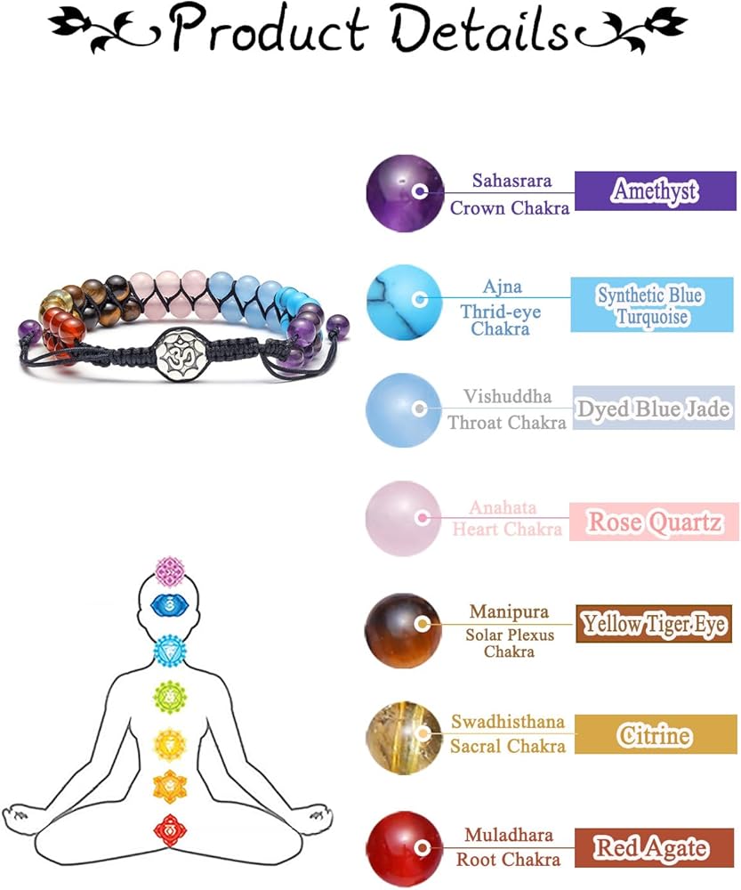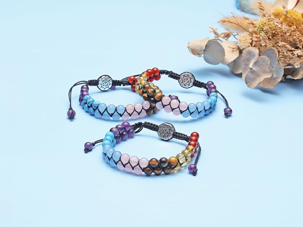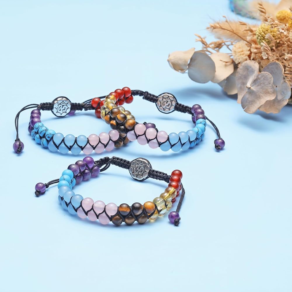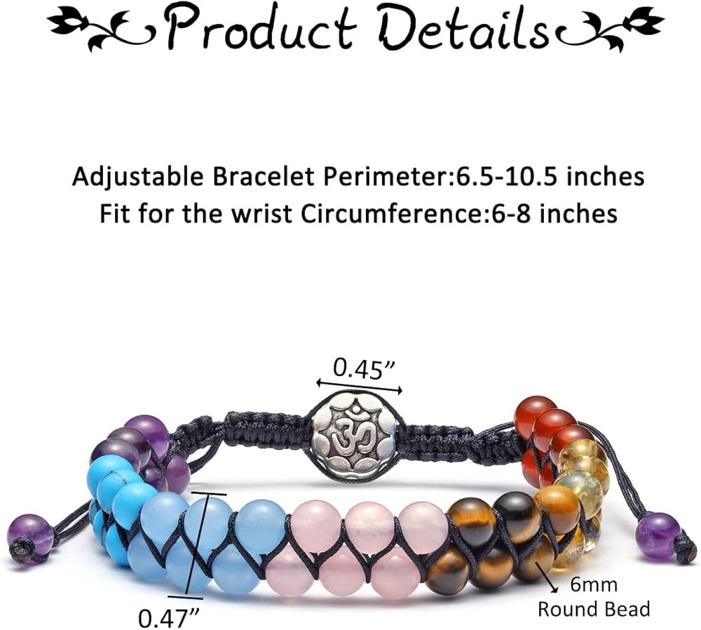 GEHECRST 7 Chakra Crystal Bracelet for Women Girls Natural 6mm Chakra Stone Bead Bracelet Adjustable Healing Crystal Gemstone Anxiety Bracelets jewelry Gifts for Christmas Mother's Day