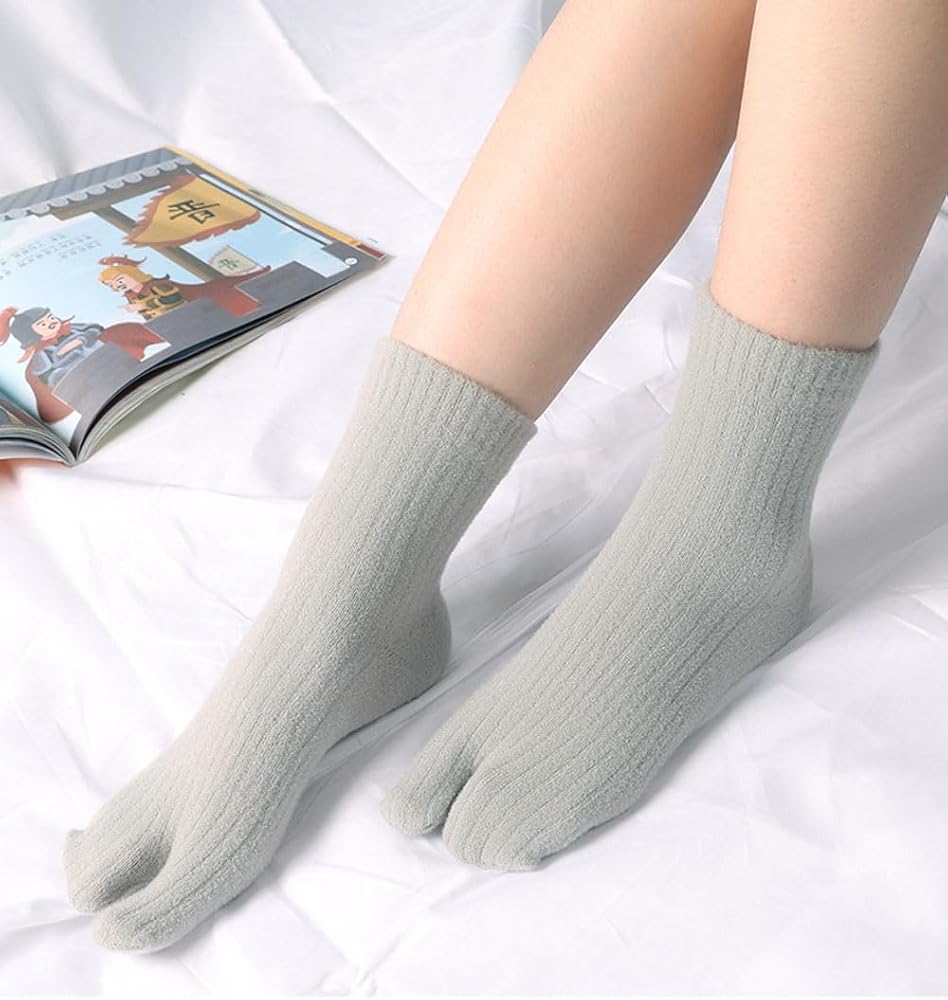 Tabi socks, or split-toe socks, have been in Japanese culture for a very long time. They were developed to wear with sandals & wooden clogs called geta. There is a special place for your big toe. Lots of people wear tabi socks: martial artists practicing Aikido or Karate, Taiko drummers, Suzuki actors, and traditional Japanese folk dancers, just to name a few! According to Shiatsu theory, wearing tabi socks benefits the back, the spine, and the digestion due to the acupuncture meridians located between the toes. This separation gives your toes the toe wiggling freedom they deserve, as they separate naturally to increase flexibility and strengthen the muscles in the foot.