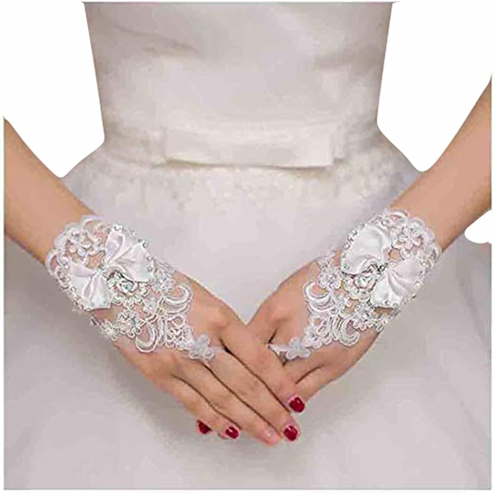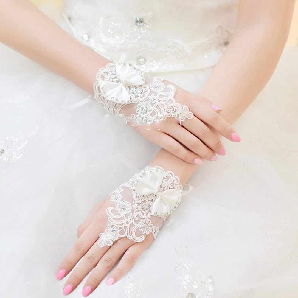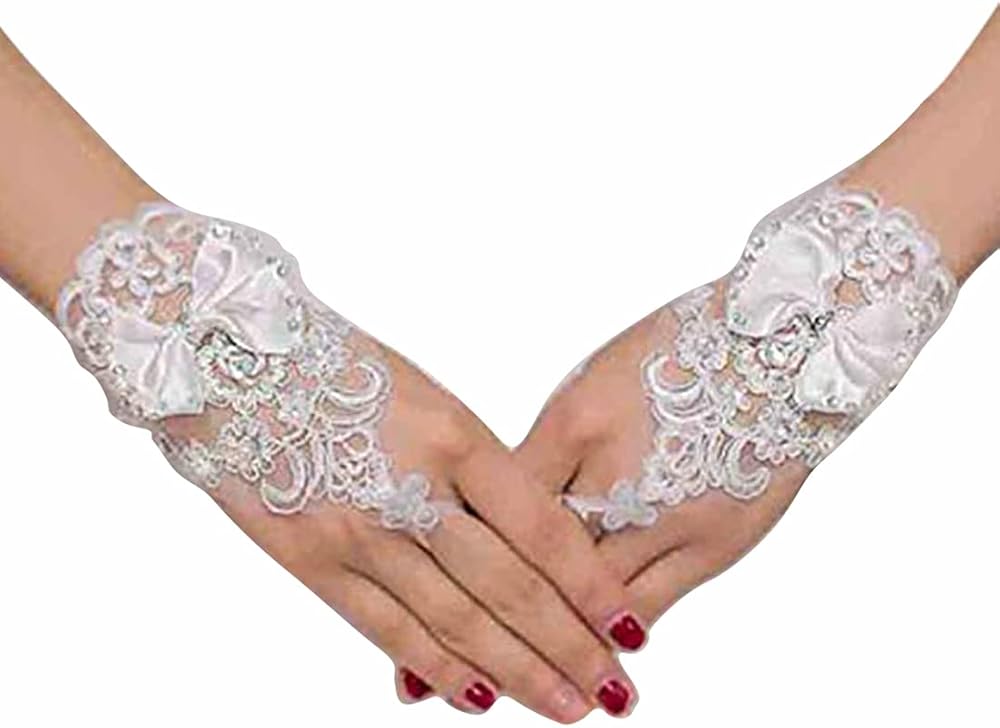 قفازات الدانتيل مطرزة بأحجار الراين والتول عالي الجودة، تصميم فيونكة ساتان أبيض لافت للأنظار مع حجر الراين المتلألئ قليلاً، قفازات الزفاف الدانتيل تتماشى مع أنواع مختلفة من أنماط الزفاف.