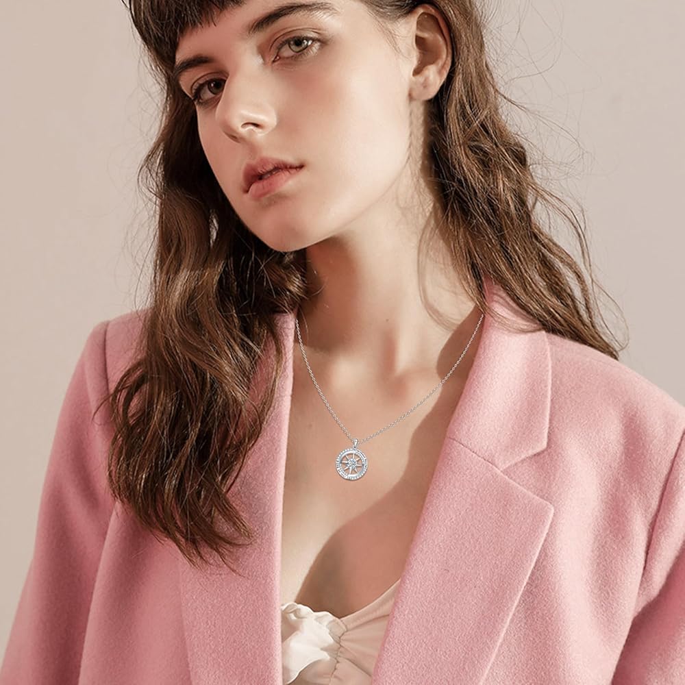 【Sterling Silver Compass Necklace Material】This compass necklace made of hypoallergenic 925 sterling silver and Cubic Zirconia stone.The chain is a stainless steel chain, tarnish-resistant, nickel-free, lead-free, cadmium-free and does not contain any allergic element. Suitable for long-term wear,especially sensitive skin women.
