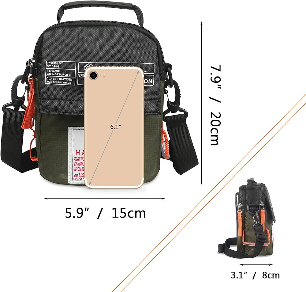 حجم الأبعاد: 5.9 × 3.1 × 7.9 بوصة (الطول × العرض × الارتفاع)، يناسب محفظة iPhone 6 6s 7 Plus والمفاتيح وسماعات الأذن وبنك الطاقة والوجبات الخفيفة والتذاكر والسجائر وغيرها من الملحقات الإلكترونية