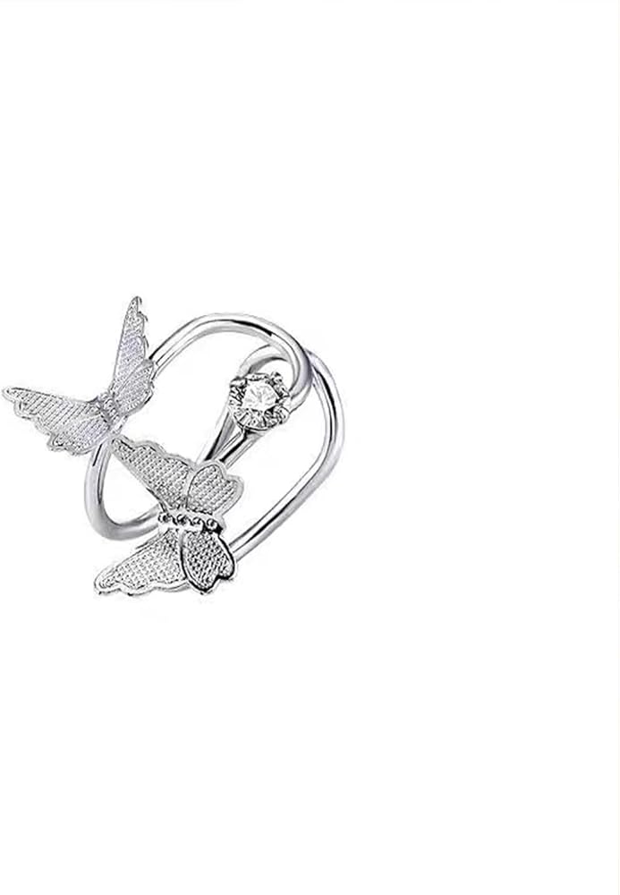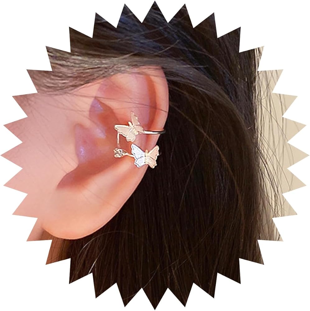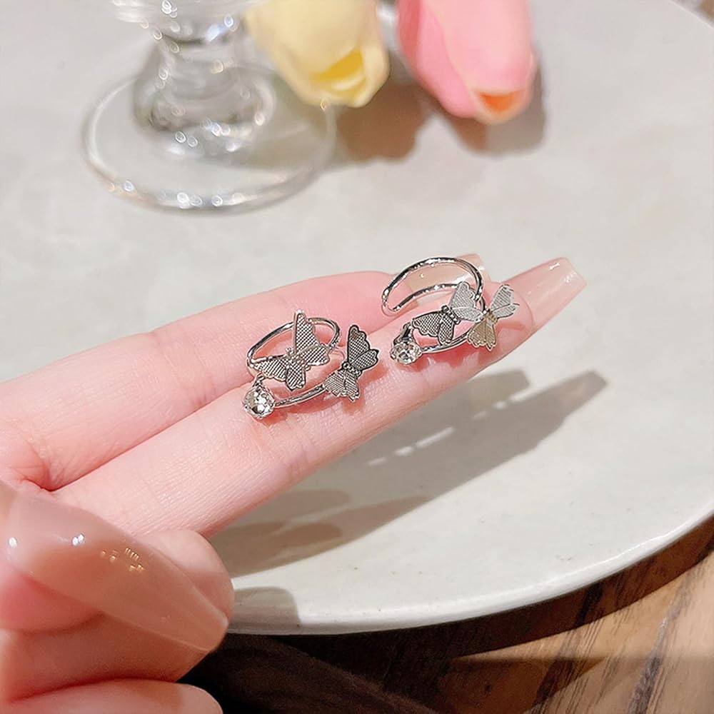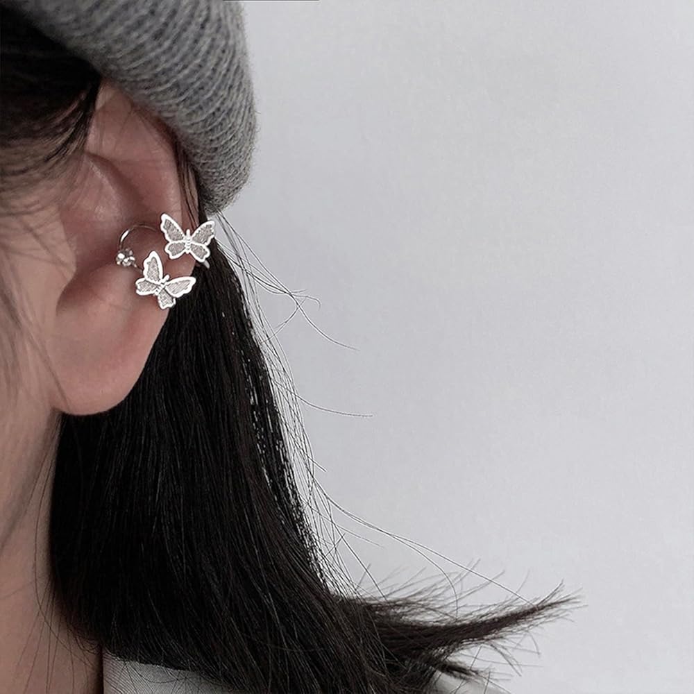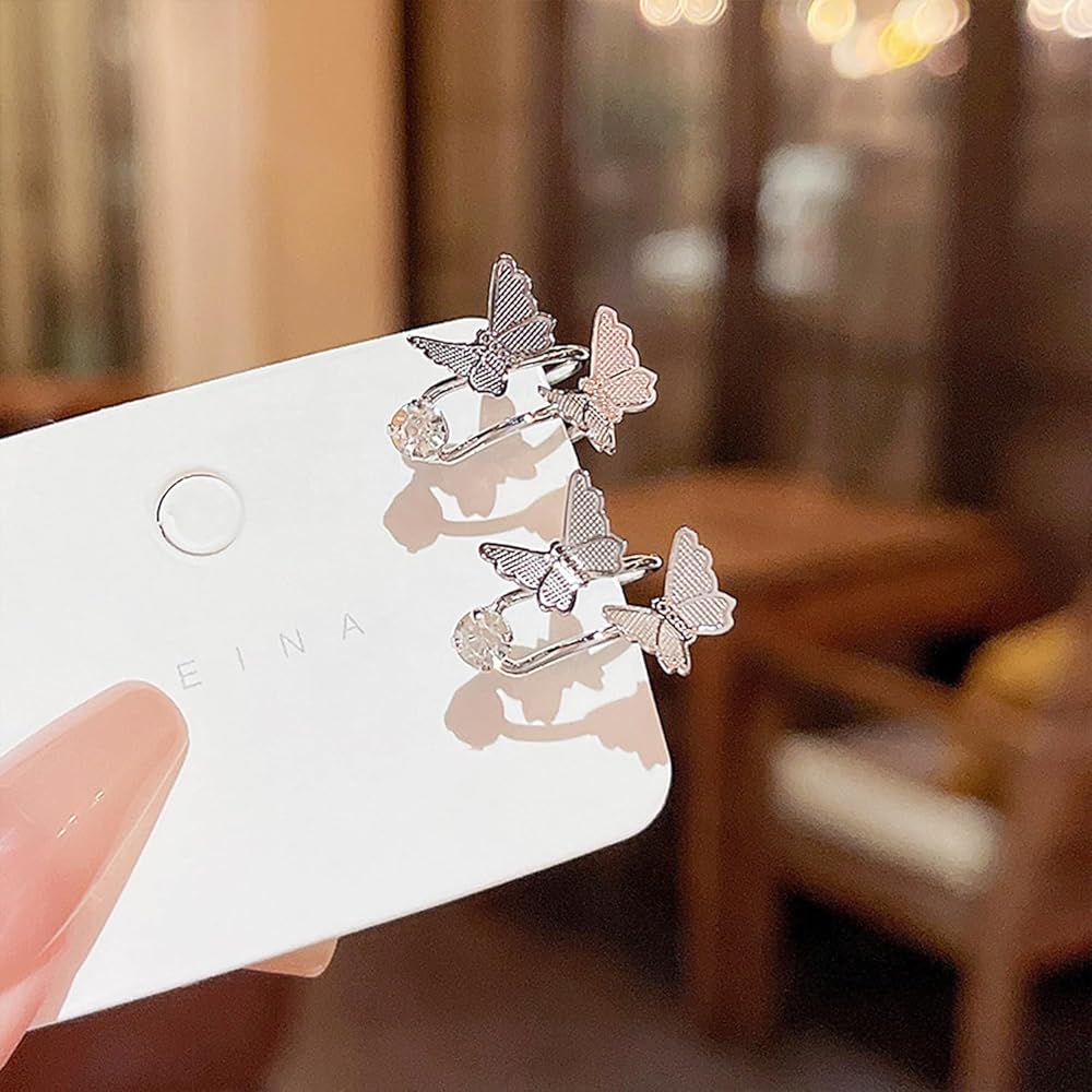 اقراط اذن على شكل فراشة مرصعة باحجار الراين اللامعة من دبليو زد ان بي واي، اقراط فضية على شكل فراشة ملتفة حول الاقراط، اقراط غير مثقوبة على شكل فراشة مزدوجة بمشبك على غضروف الاذن