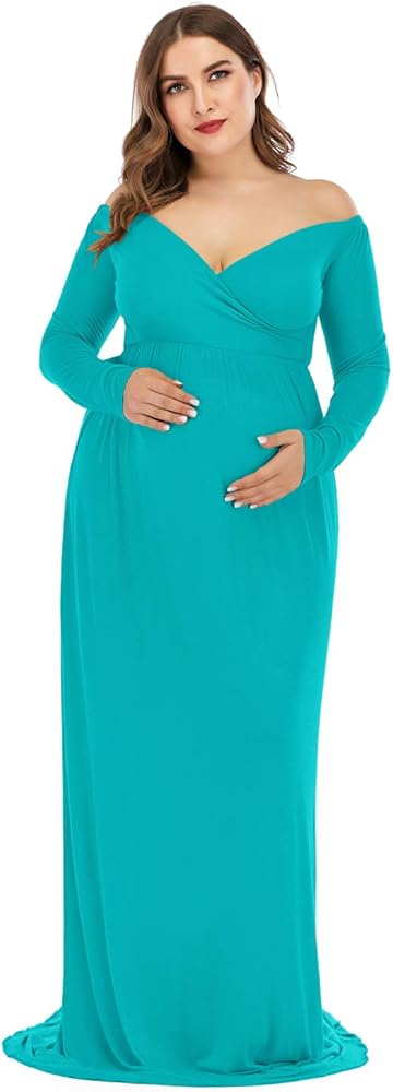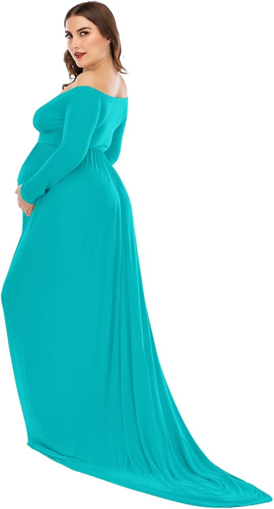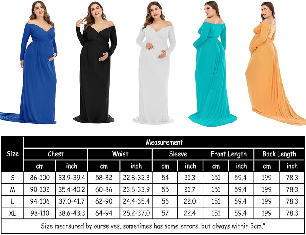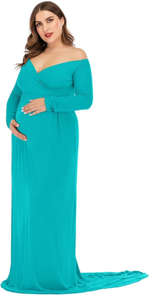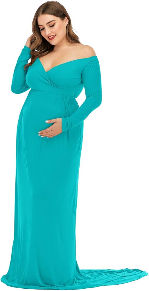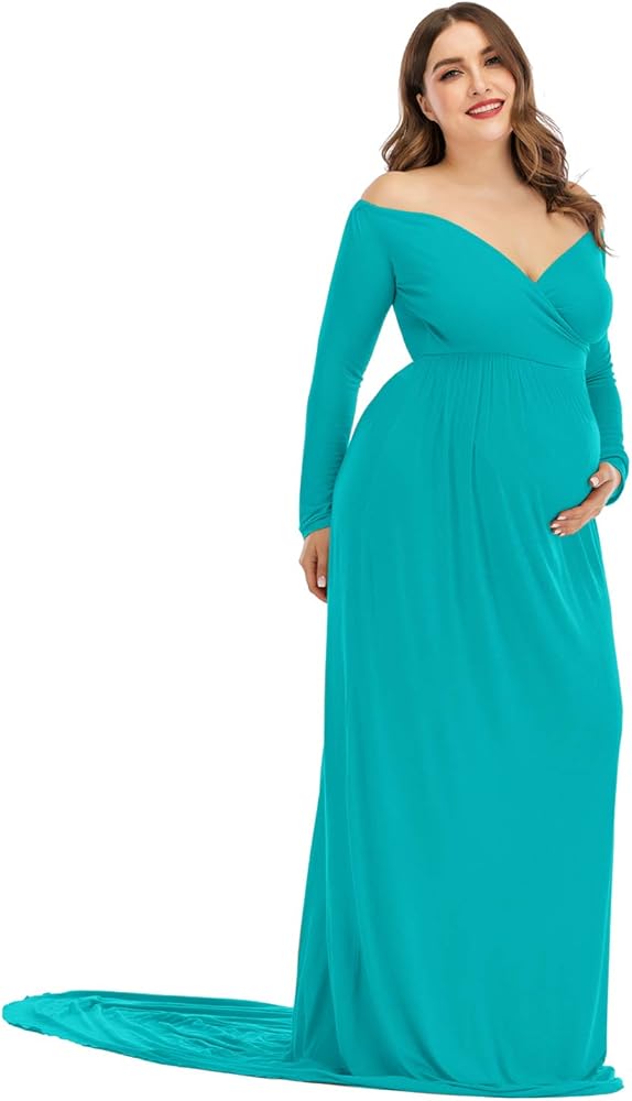 • Features: Off the Shoulder, Long Sleeves, Cross-Front V Neck/Sweetheart Neckline design shows your beautiful lines of collarbones and shoulders; A half circle cut with a very long train outlines your perfect shape & adorable baby bump effortlessly