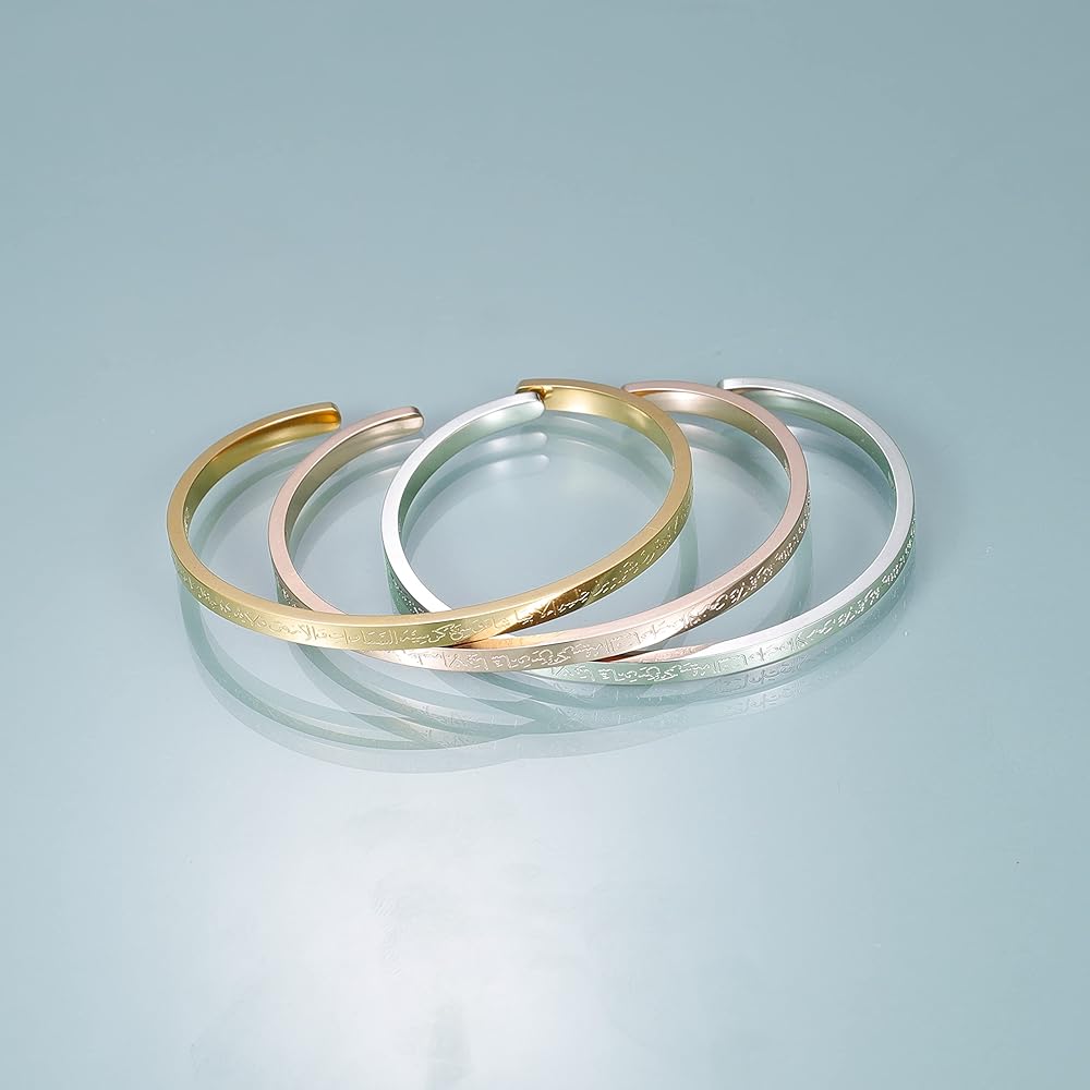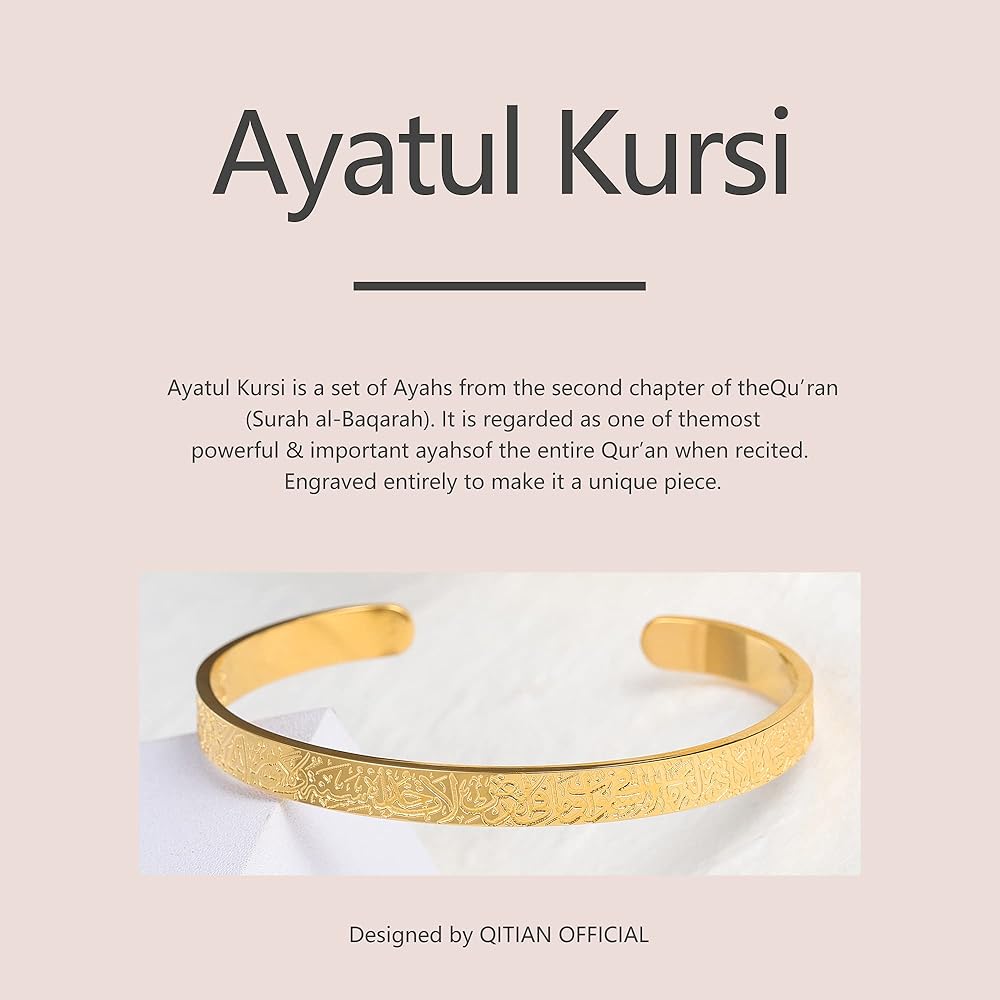 🎁PREMIUM PROCESS:ayatul kursi Necklace allah gold cuff bracelets will polished many times with sleek edges to avoid scratch your wrist, shining surface and writing is easy to read, Very nice finish, Classy looking, substantial but light weight comfortably for daily wear.
