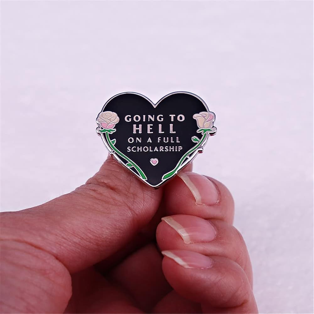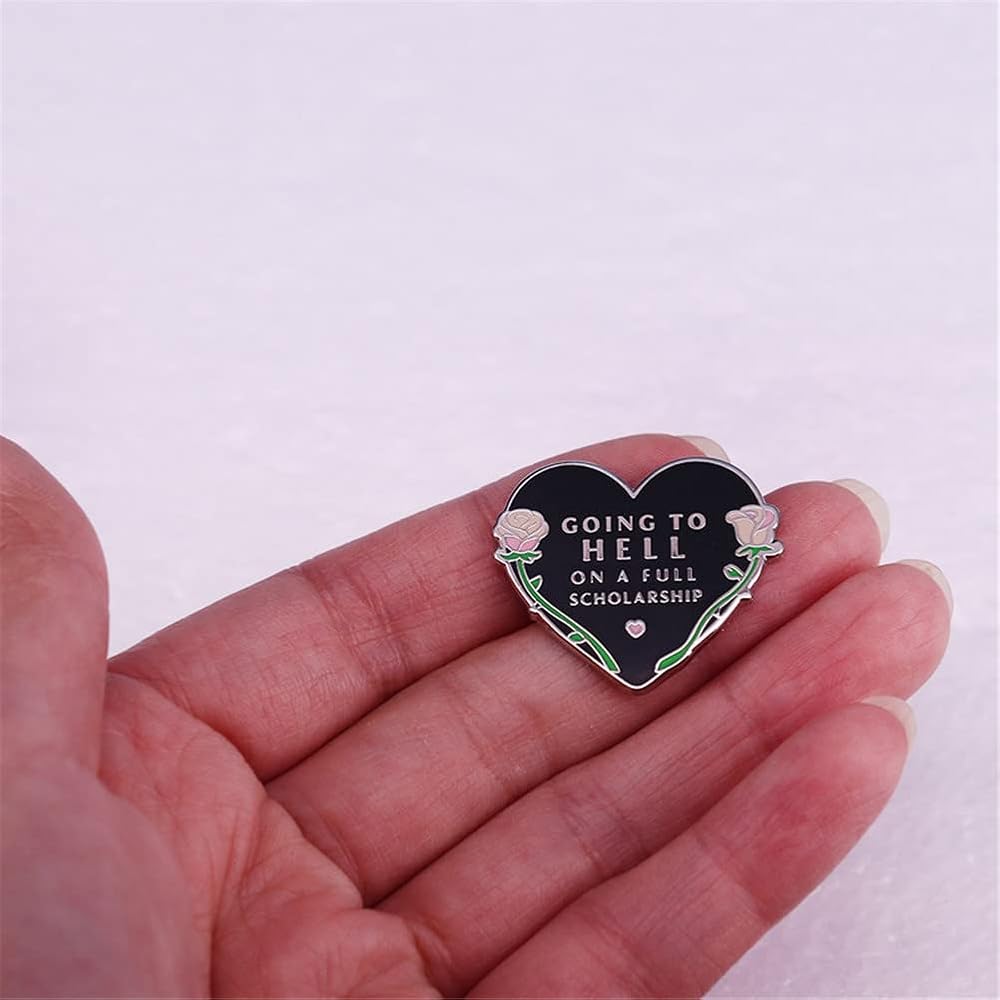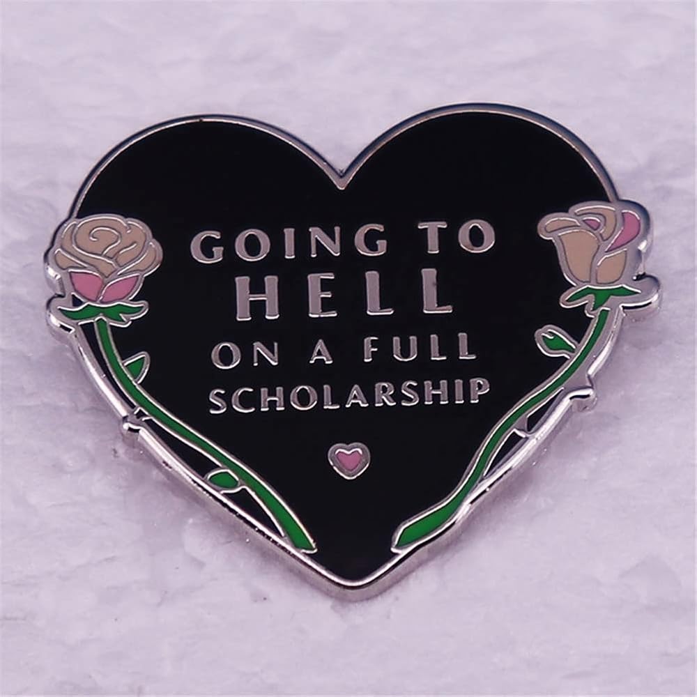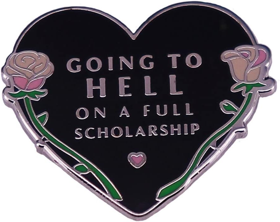 أنا ذاهب إلى الجحيم على منحة دراسية كاملة بروش الهالوين الظلام الفن شارة هدية للبنين الطلاب الرجال النساء المينا دبوس للملابس زي قبعة المدرسية DIY الديكور