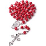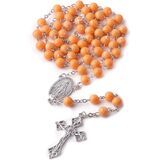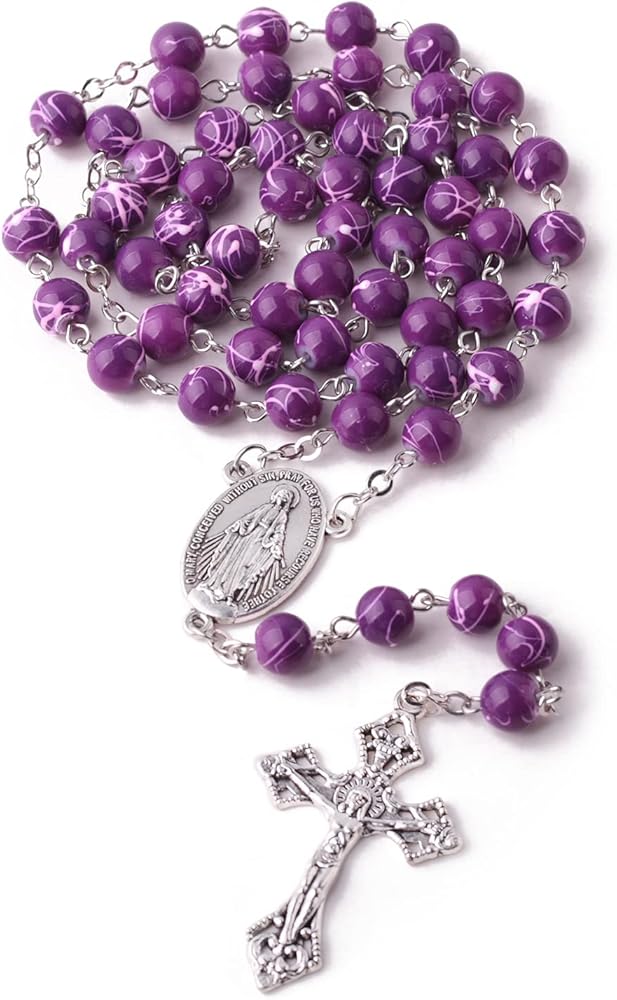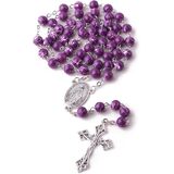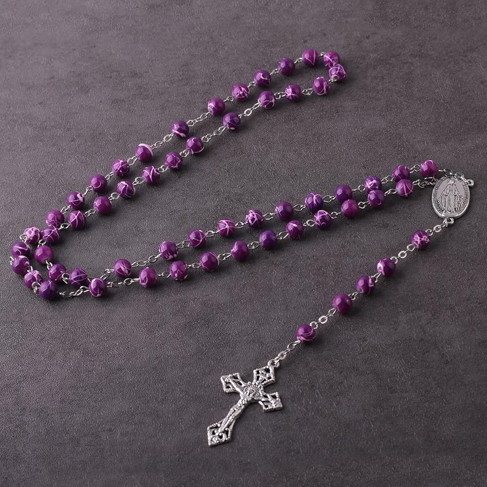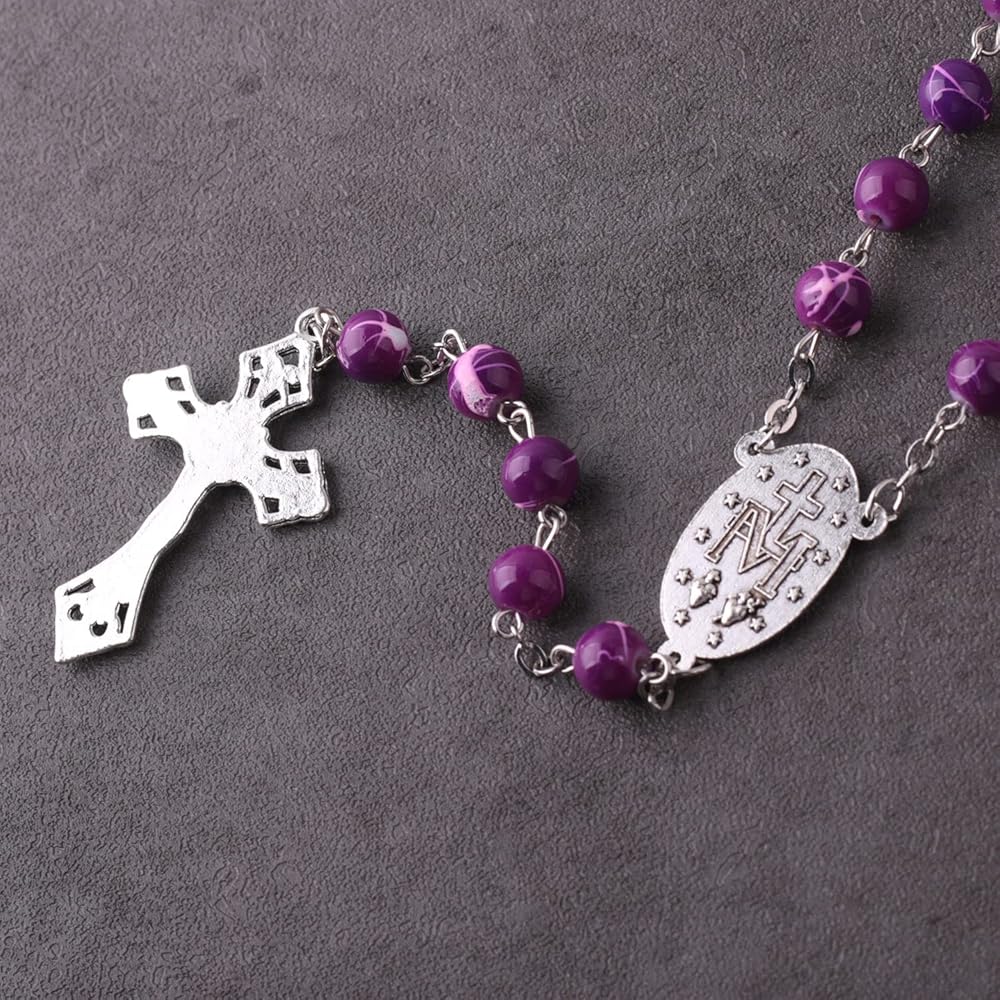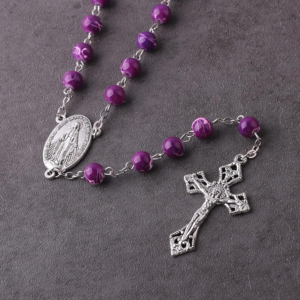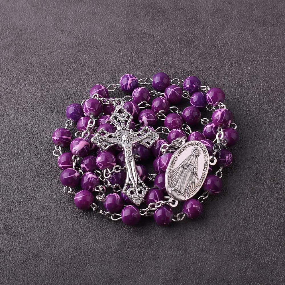 Luomu 8mm Glass Beads with Beautiful Pattern Printed Catholic Chain Rosary Necklace with Virgin Mary Miraculous Medal and Crucifix