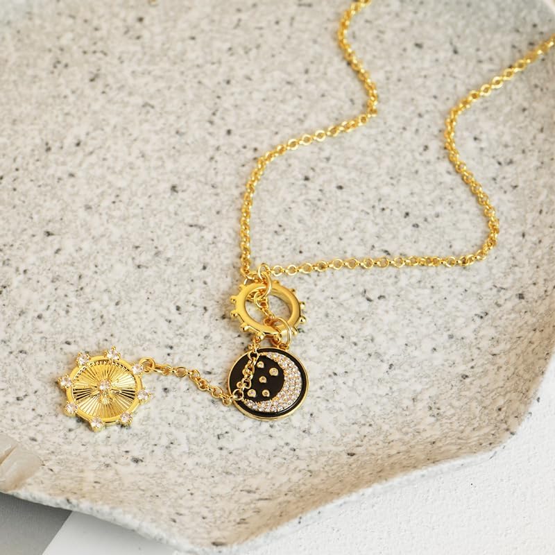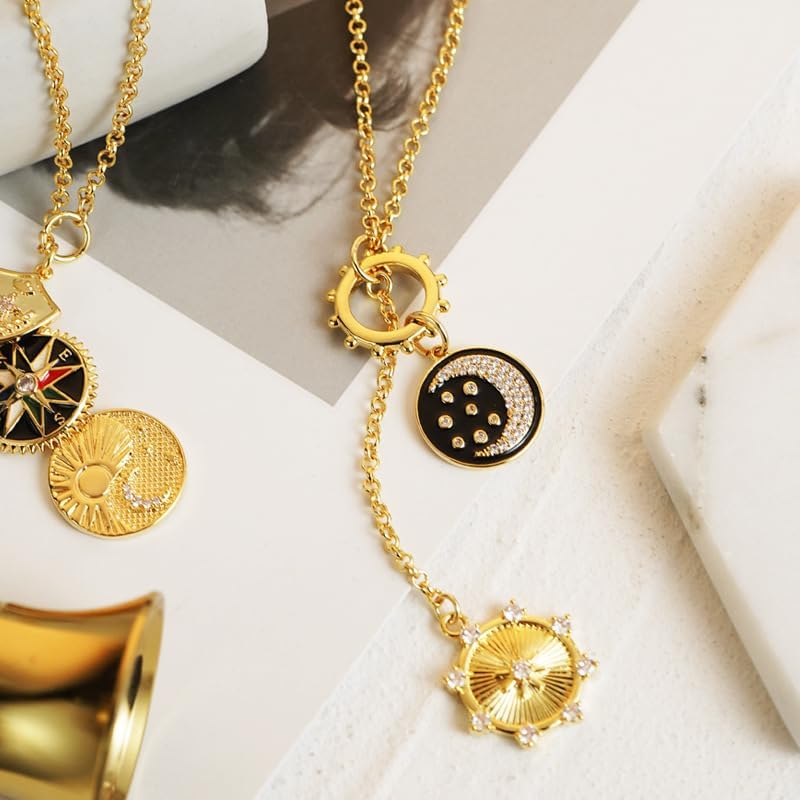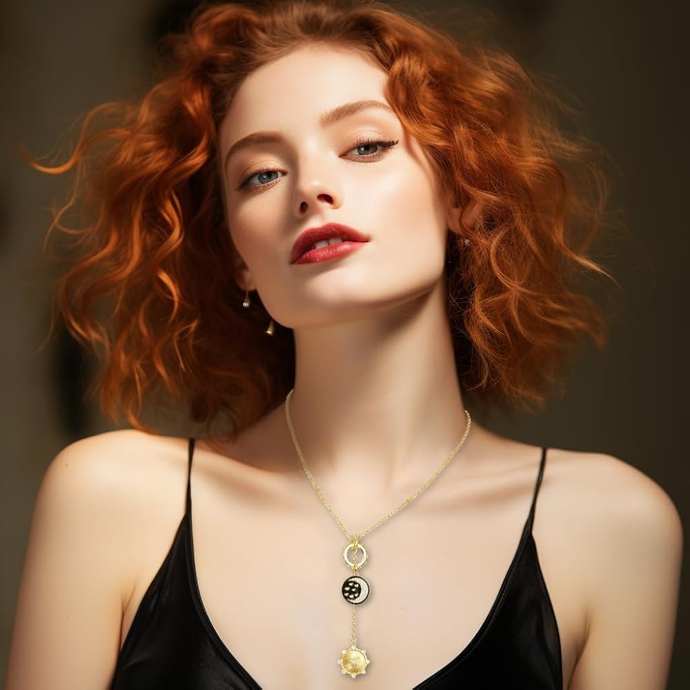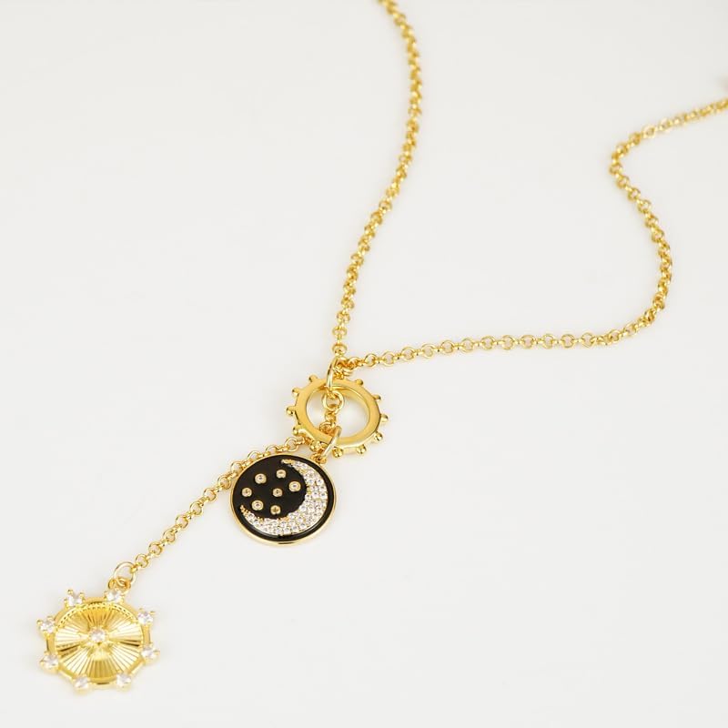 • CHIC DESIGN: Delicate multi pendants, shaped in rudder, moon & star, sun, with sparkling zircons inlaid. Capture the light in the shining Y necklace.