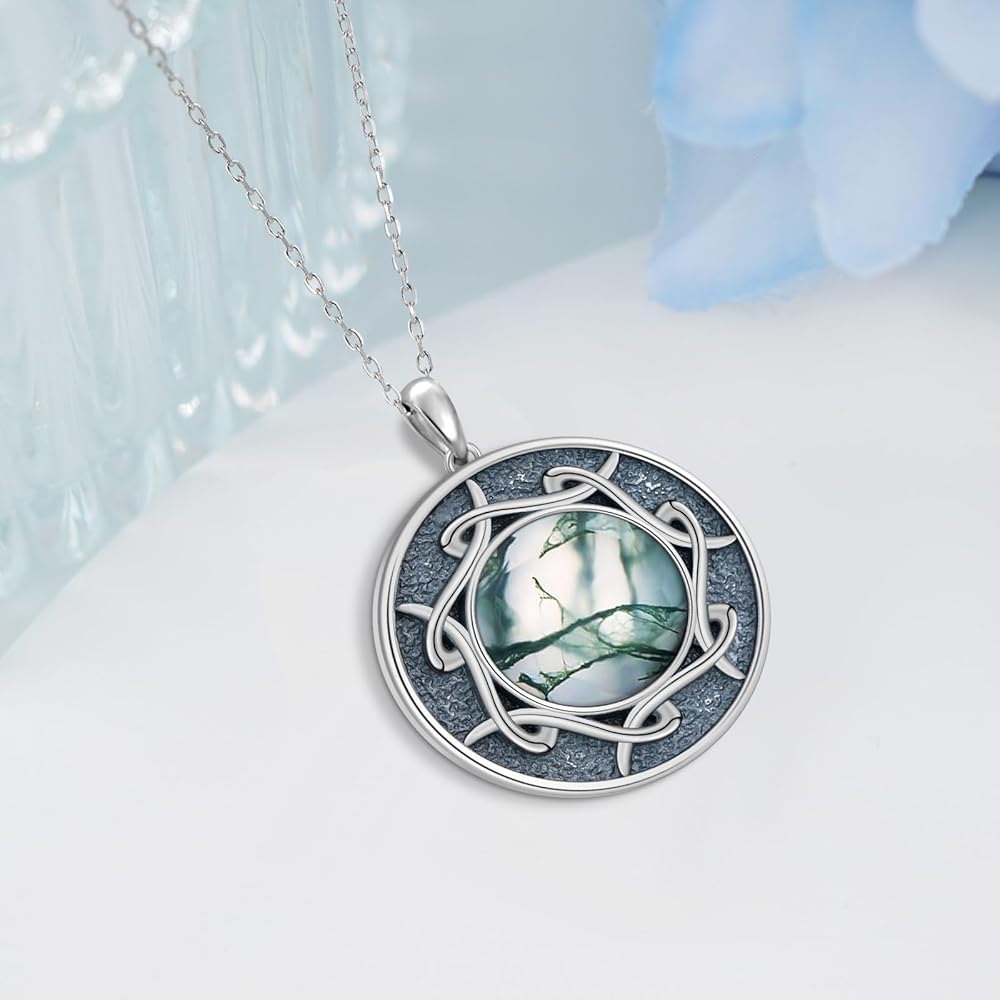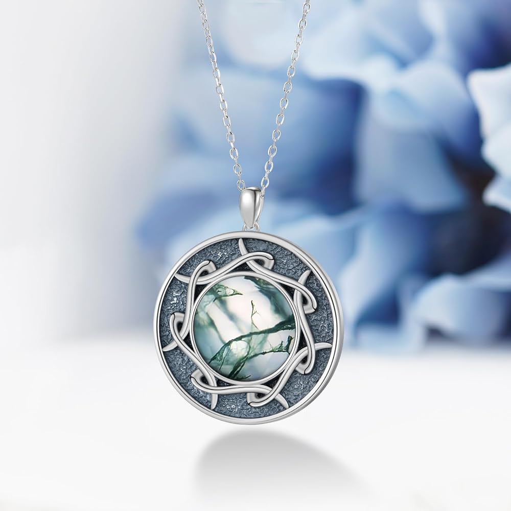 مادة قلادة العقيق الطحلب: قلادة العقيق الطحلب مصنوعة من الفضة الإسترلينية 925، لا تسبب الحساسية، مناسبة للارتداء لفترة طويلة، خاصة للنساء ذوات البشرة الحساسة، لتجنب القلق بشأن حساسية الجلد.