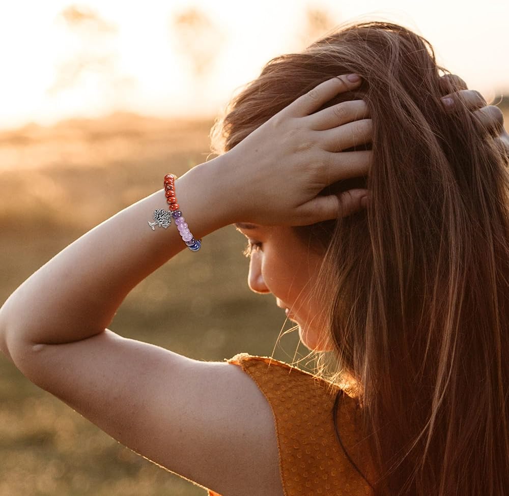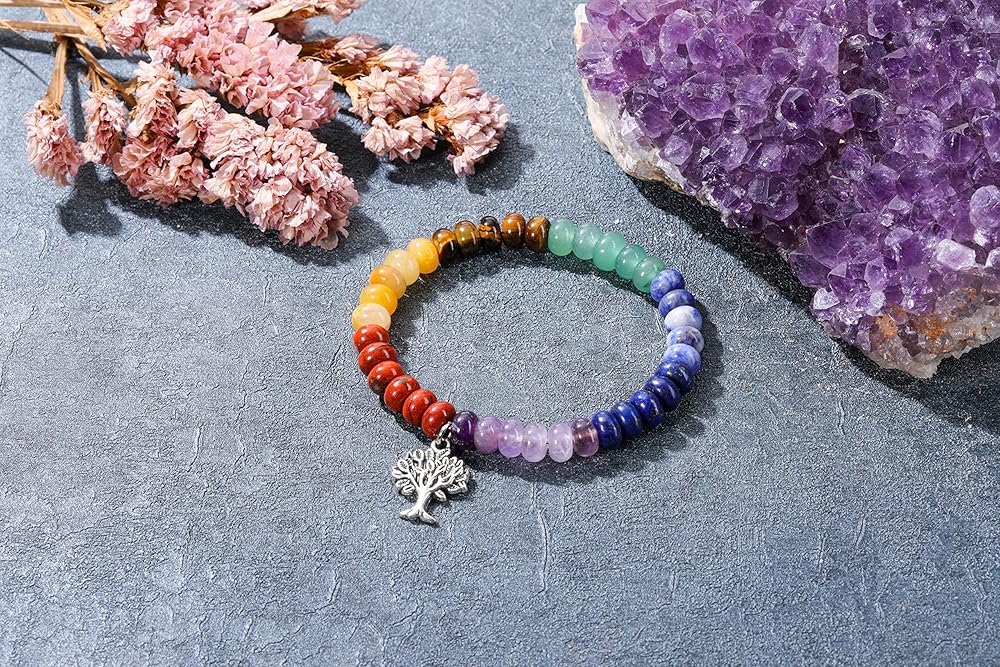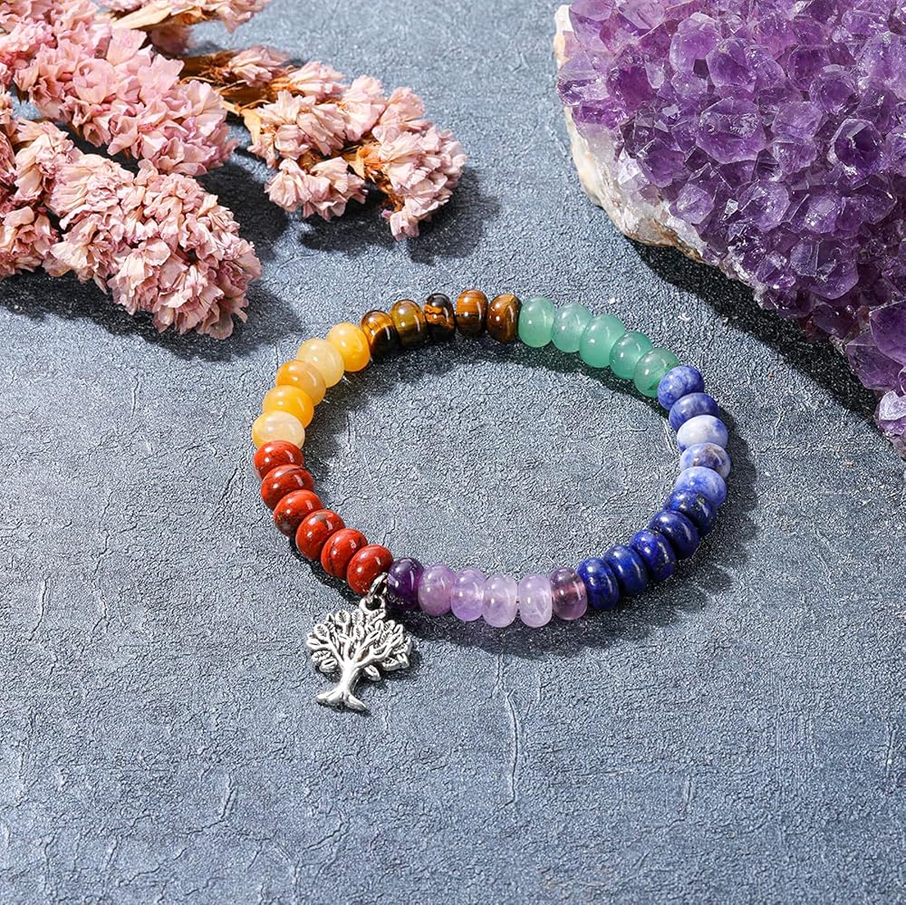 GEHECRST 7 Chakra Crystal Bracelet for Women Natural Healing Crystal Stone Beaded Bracelet Chakra Gemstone Bracelet Semi Precious Energy Gemstone Yoga Bracelet Jewelry Gift for Her Christmas