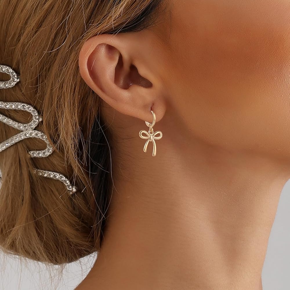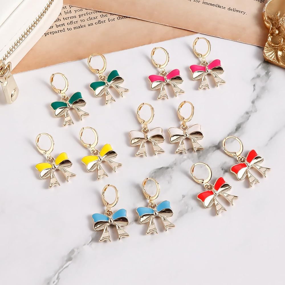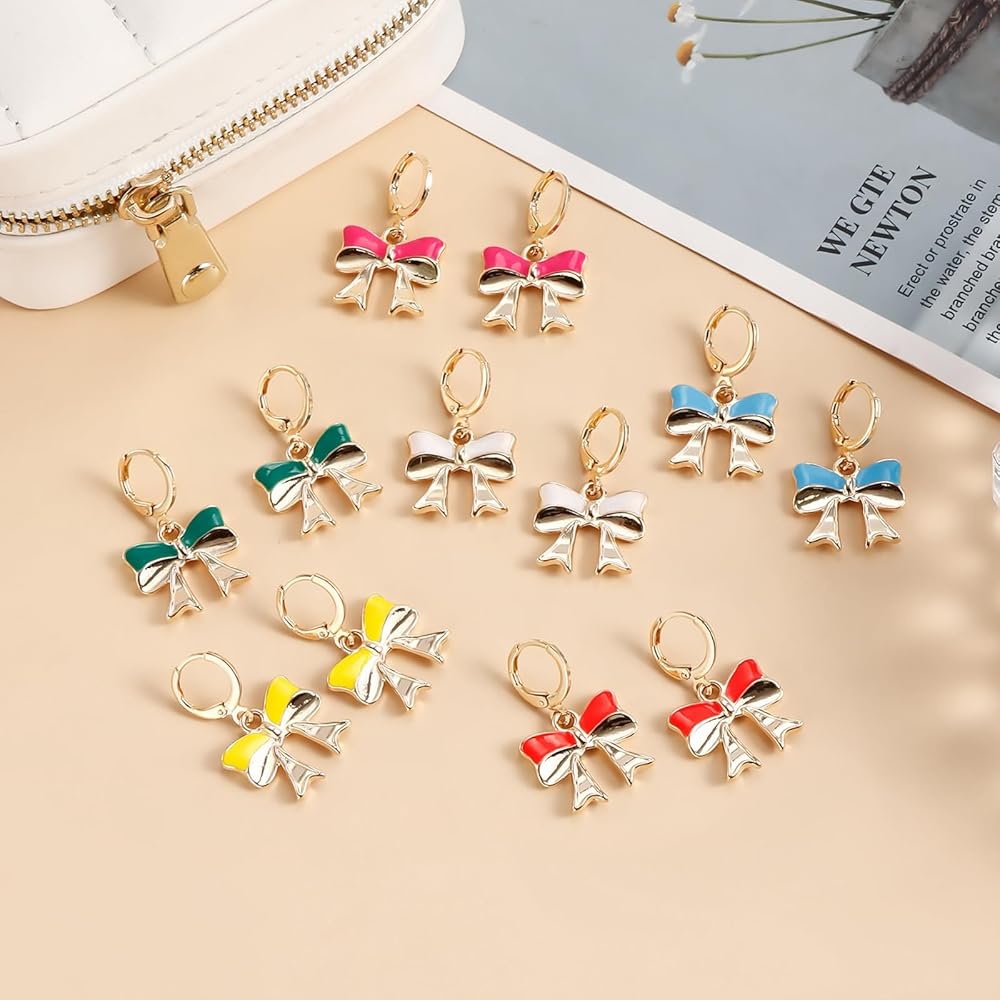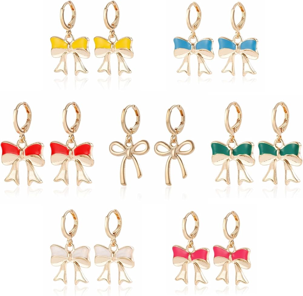 7 أزواج من الأقراط الذهبية على شكل فيونكة للنساء والفتيات مع فيونكة على شكل فيونكة وأقراط هوجيز مطلية بالذهب على شكل فيونكة متدلية على شكل فيونكة مجوهرات الأزياء