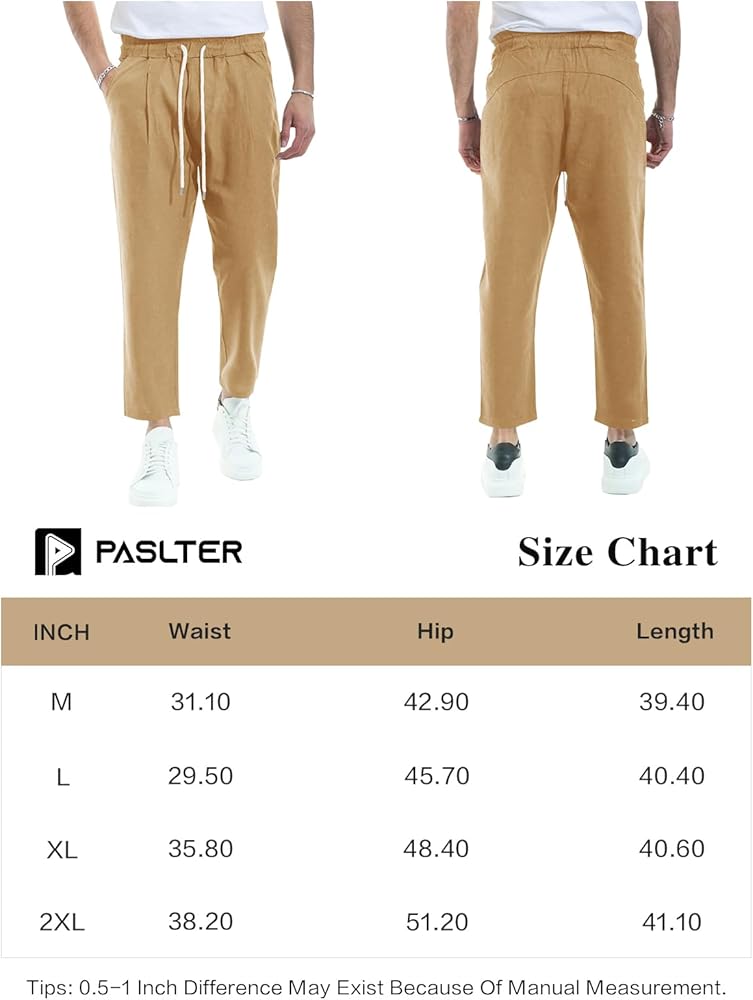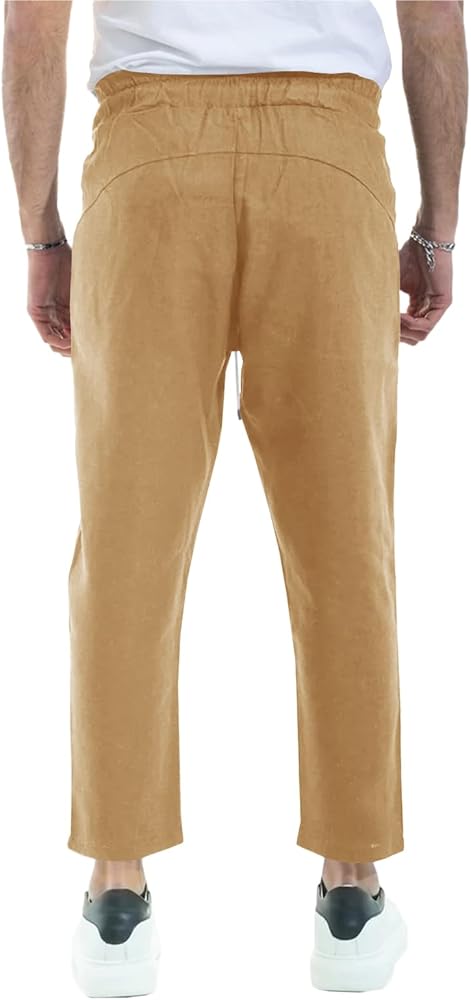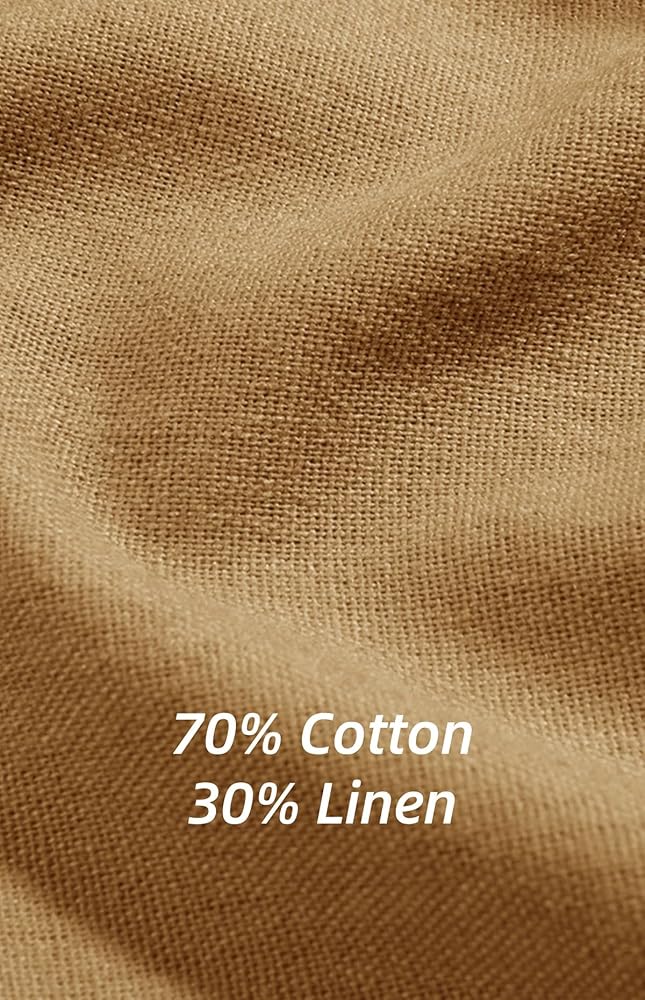 • المواد: سراويل كتان قطنية عالية الجودة (70% قطن، 30% كتان)، خفيفة الوزن، ومسامية، وناعمة، وتبقيك منتعشًا ومرتاحًا للارتداء طوال اليوم، خاصة في الأيام الحارة.
