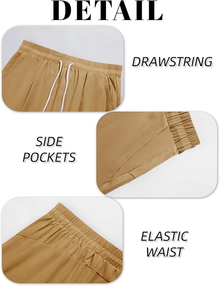• النمط: بنطال كتان بخصر مطاطي مصمم برباط إغلاق، وجيبين جانبيين، بنطال صيفي بأرجل مستقيمة، بسيط وأنيق.