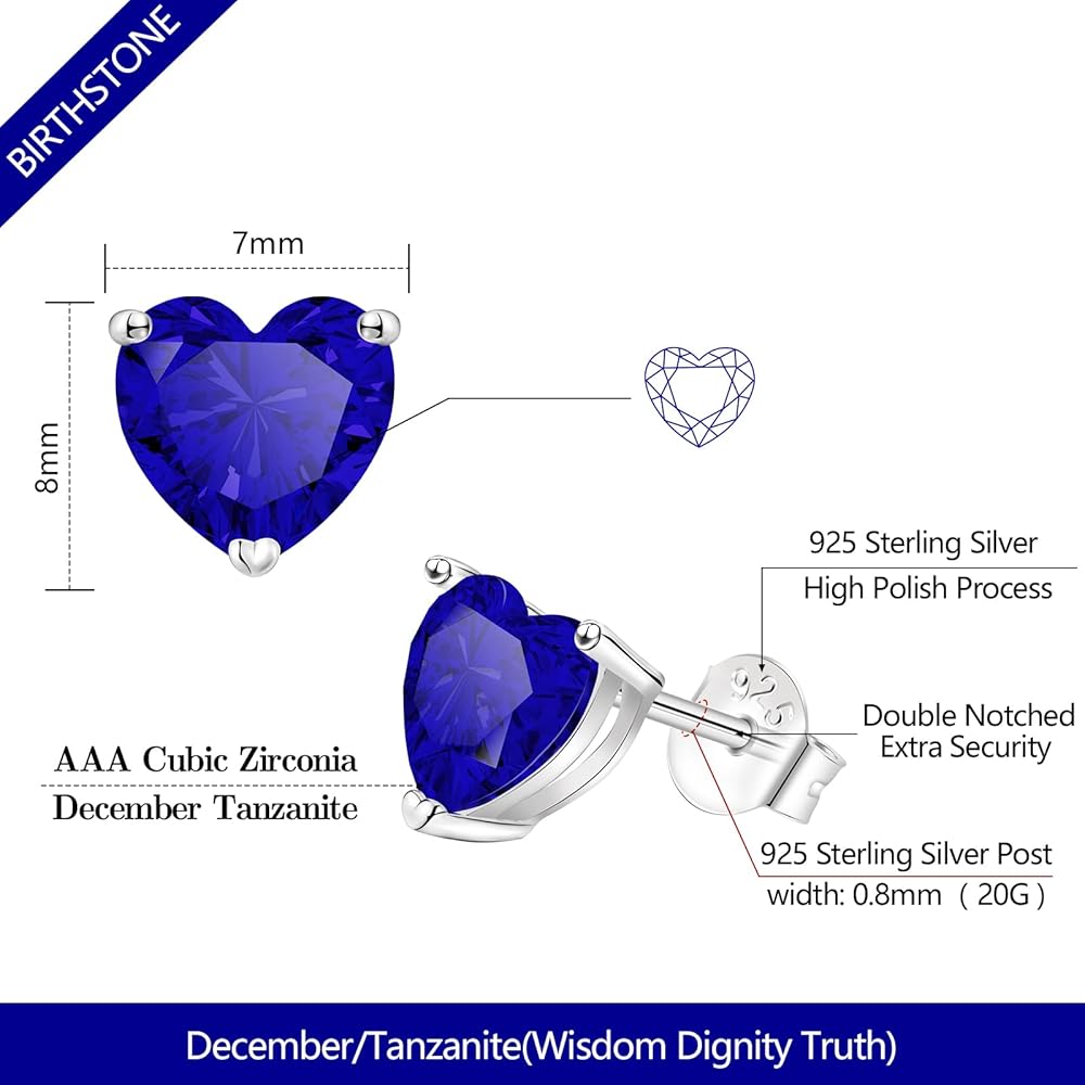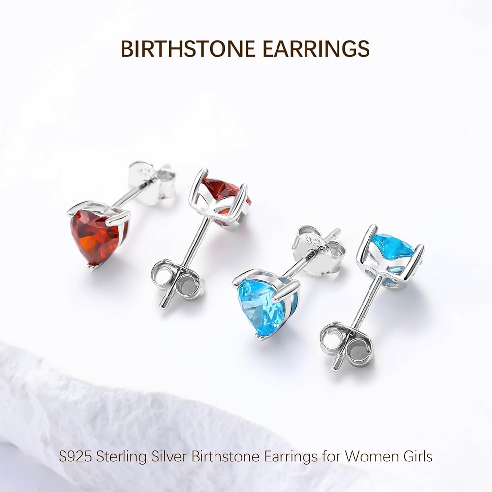 925 STERLING SILVER EARRINGS:The heart stud earrings are made of 925 sterling silver, suitable for women girls with sensitive ear holes. The stud earrings,sparkled in the sunlight, create a pretty look around one's ears. These birthstone earrings are handcraft inlaided and polished, ensure the gem will not falling off, comfortable to daily wear.