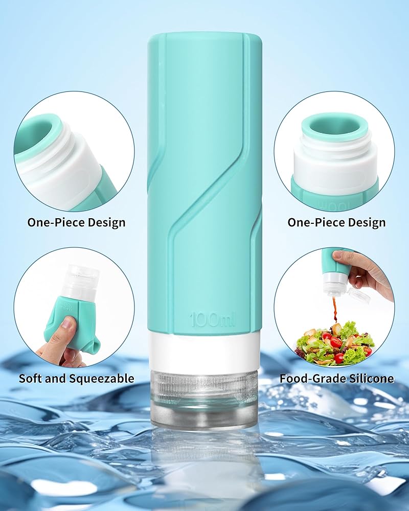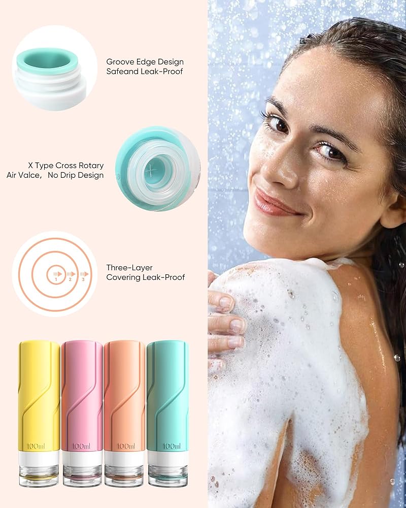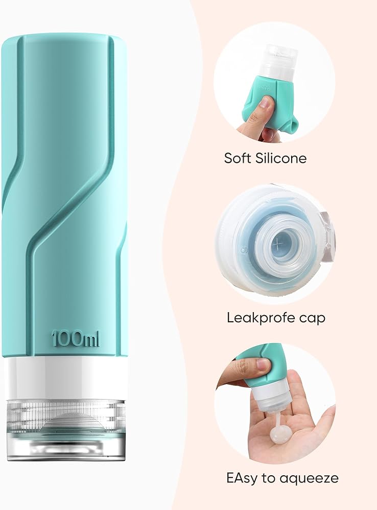【Tsa Approved LEAKPROOF DESIGN】Upgraded one-piece leak proof with 3 layer covers design, more effectively prevent liquid leakage from oozing out of the bottle. No matter where you go, the travel toiletry containers seals liquids to keep your other luggage safe and intact.