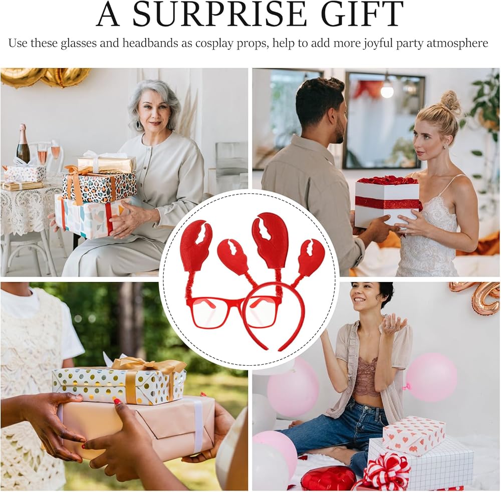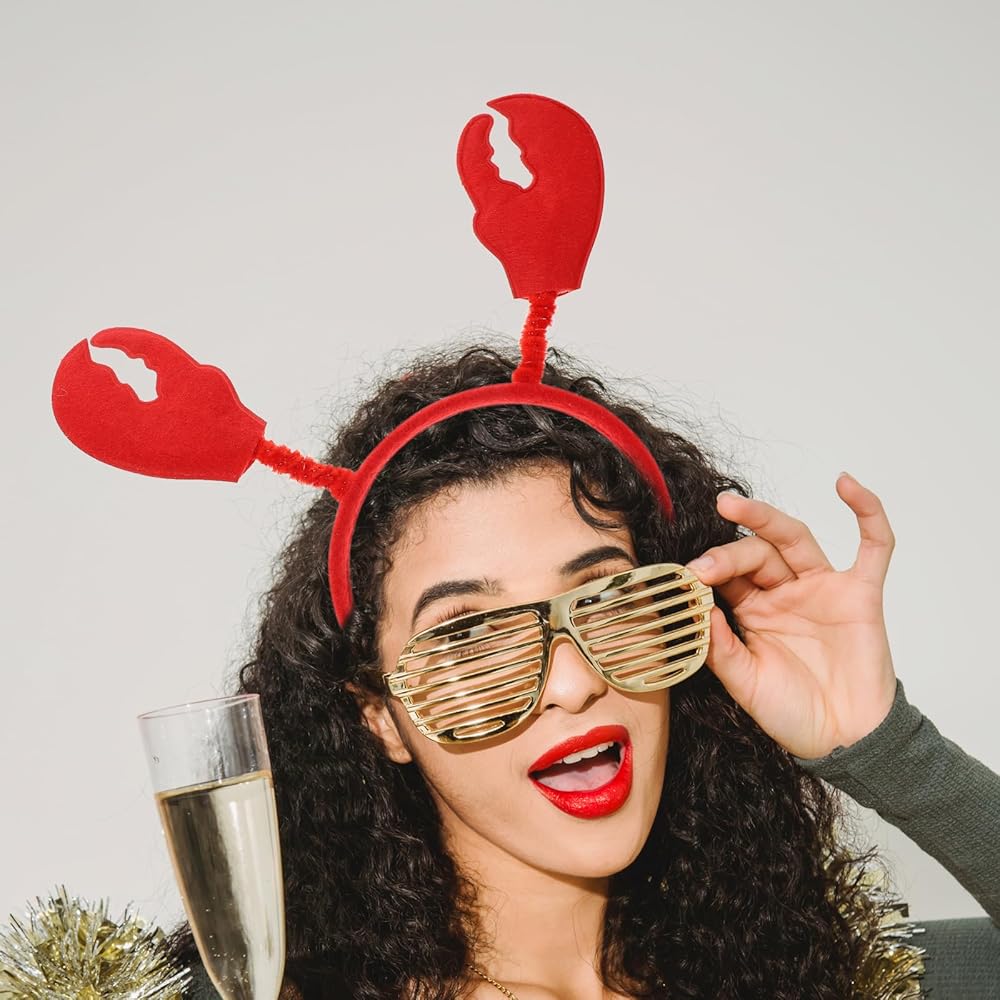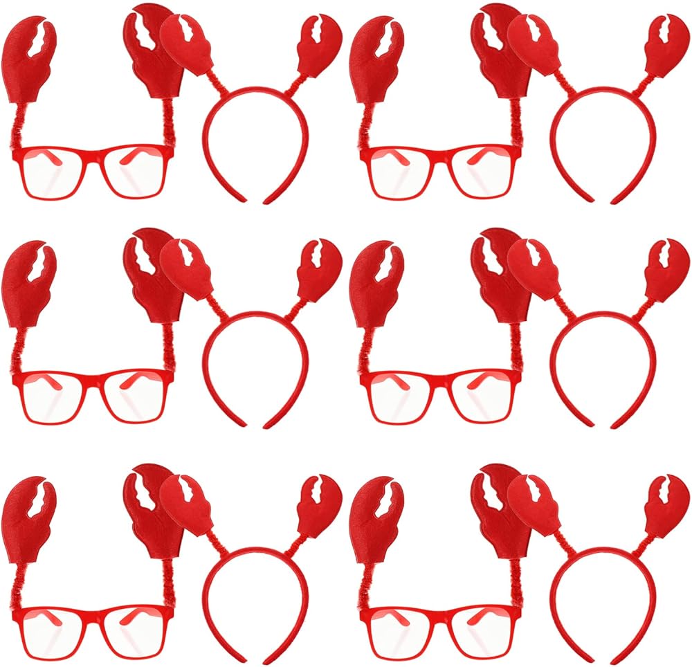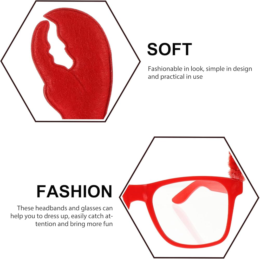 Adorainbow Crab Headband Lobster Sunglasses and Headband 6 Set Red Headband Crab Costume Accessories Sea Animal Hair Band Headwear for Halloween Dress up Party