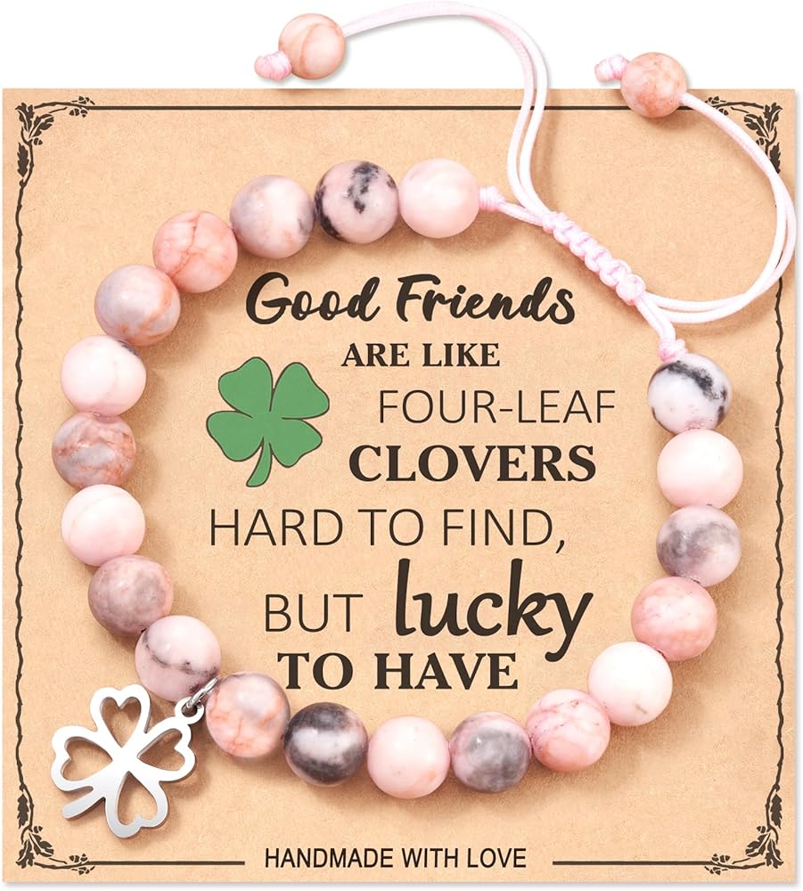 [هدية أفضل صديق للنساء] مصحوبة ببطاقة رسالة ذات معنى، فقط دع صديقك العزيز يعرف: أنت مثل أربع أوراق البرسيم التي يصعب العثور عليها، ولكن من المحظوظ الحصول عليها. هذه هدية فريدة لابنة أختك في حفلة عيد الميلاد، وعيد الشكر، والهالوين، والكريسماس، وعيد الحب، وما إلى ذلك.