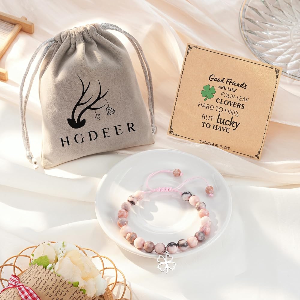 [هدايا البرسيم ذات الأربع أوراق] على مر العصور، يرمز البرسيم ذو الأربع أوراق إلى الحظ. ارتدي هذا السوار، وسوف يرافق صديقتك في مغامرتها الجديدة، مما يجلب لها الشجاعة والحكمة والحظ السعيد. هل يمكنك أن تتخيل مدى دهشتها وسعادتها عندما أعطيتها هذا السوار؟