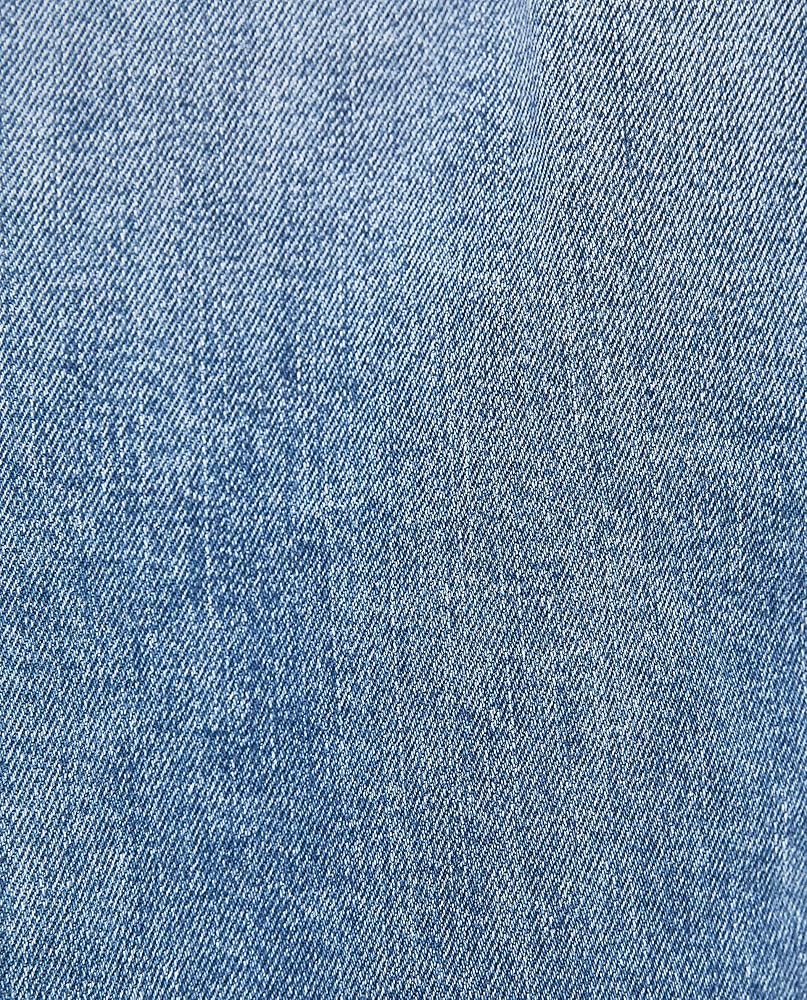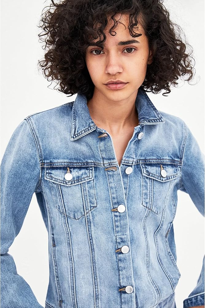 This jacket features a basic collar, a buttoned front, faded wash, two front flap button chest pockets, front welt pockets, and long button cuff sleeves.