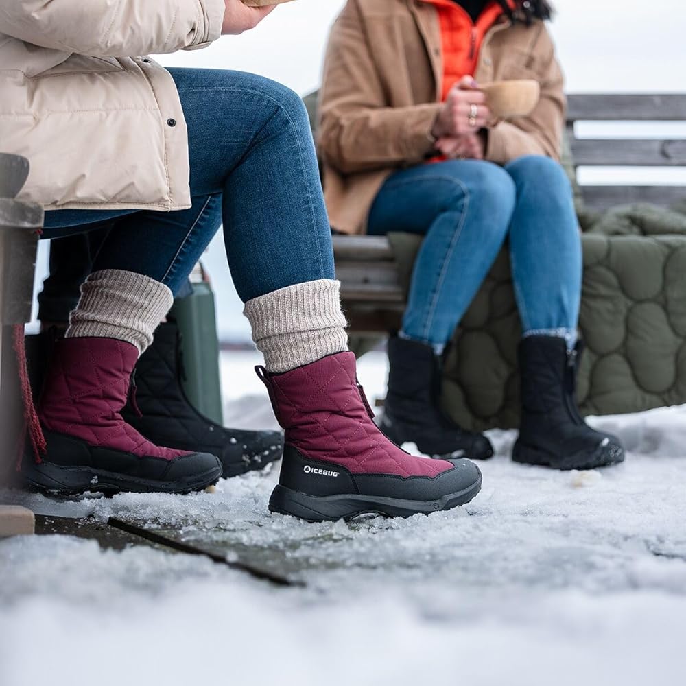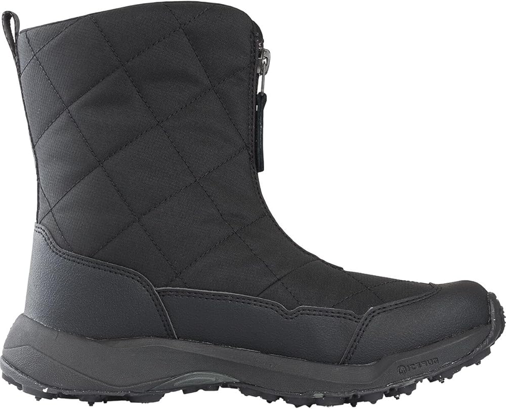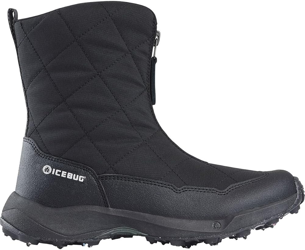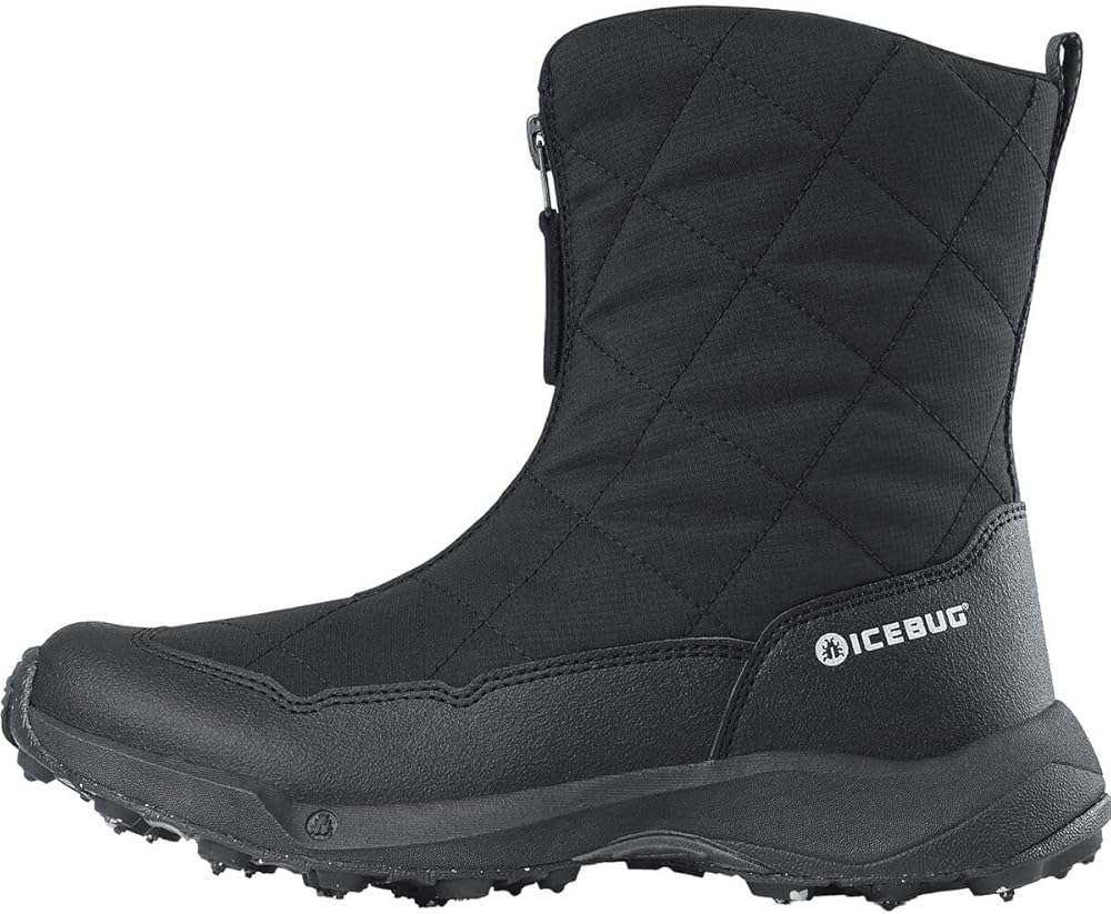 Ivalo BUGrip is one of the all-time Icebug best-sellers. This version has seen some upgrades but is still as convenient and light as ever. The upper is quilted RipStop with good water resistance. The insulation layer is made of 100 percent recycled polyester. Ivalo is protected from snow and slush by the mudguard that wraps the whole lower footpart of the boot. Weather resistant front zipper makes Ivalo easy to put on and off. ESS stabilizer and lots of forefoot rocker gives stable platform for fast and healthy feet. Wide ergonomic last. Outsole with dynamic carbide tip studs gives confidence on ice but walks completely civilized on pavement and other surfaces.