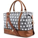 المادة والحجم واللون: مصنوعة من مادة البوليستر عالية الجودة المقاومة للرذاذ وجلد البولي يوريثان المتين. خياطة قوية ومواد شديدة التحمل. يبلغ مقاس حقيبة عطلة نهاية الأسبوع تقريبًا ارتفاع 15 × عرض 20 × عمق 9 بوصة. يبلغ مقاس الجيب السفلي الفسيح ذو السحاب المزدوج تقريبًا. العرض 18 × الارتفاع 4 × العمق 9.