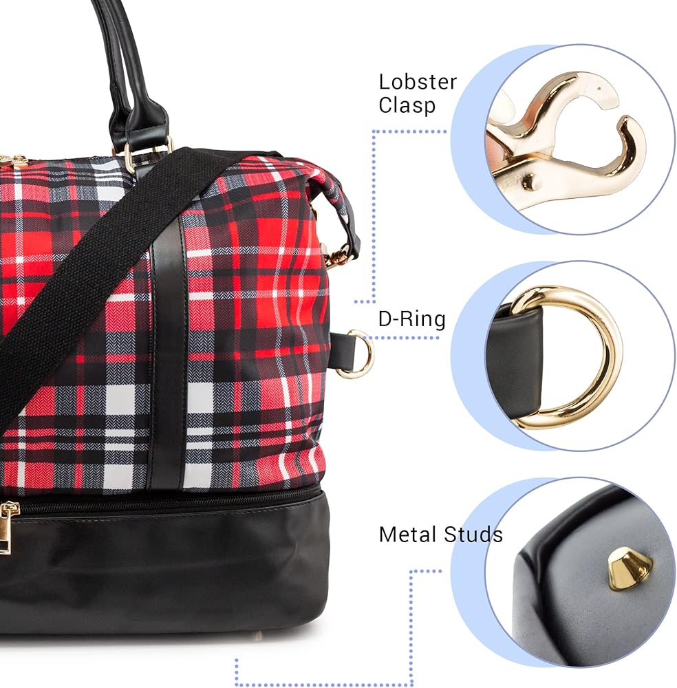 سعة كبيرة: يبلغ أبعاد حقيبة السفر في عطلة نهاية الأسبوع هذه طوال الليل حوالي 15 × عرض 20 × عمق 9 بوصة. يمكنك استخدامها كحقيبة حمل وحملها على متن طائرة، أو حقيبة سفر في إجازة قصيرة أو رحلة عمل. تتميز بمساحات تخزين كبيرة لجميع مستلزمات السفر لرحلة قصيرة مثل الملابس والملابس ومستحضرات التجميل ومستلزمات المكياج وأدوات النظافة والمحافظ والمفاتيح وسماعات الأذن والهواتف الذكية والطاقة المحمولة والهواتف المحمولة والملفات والكمبيوتر المحمول والأجهزة اللوحية والأحذية ، المجلدات، الخ.
